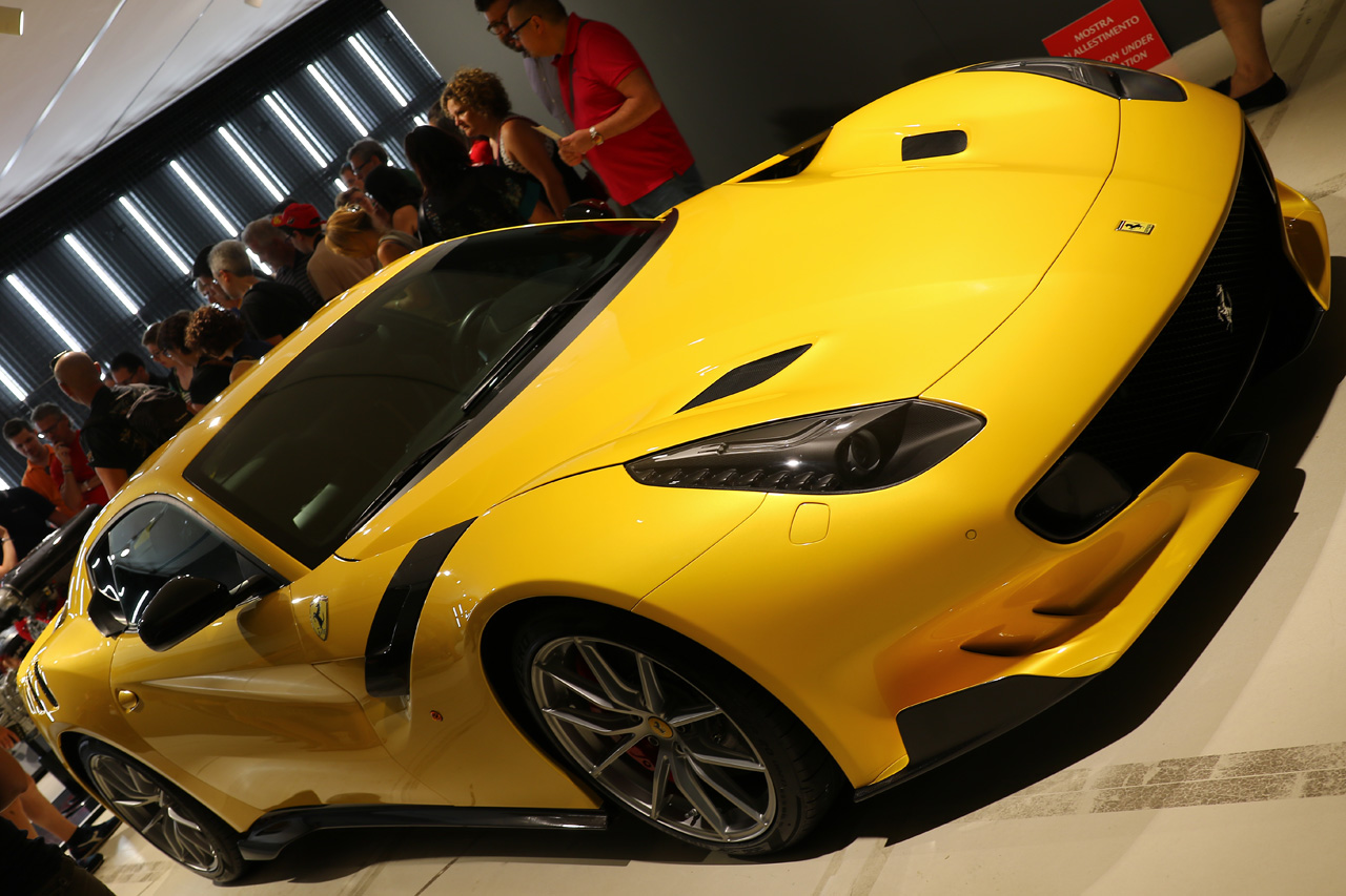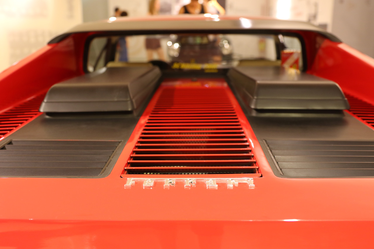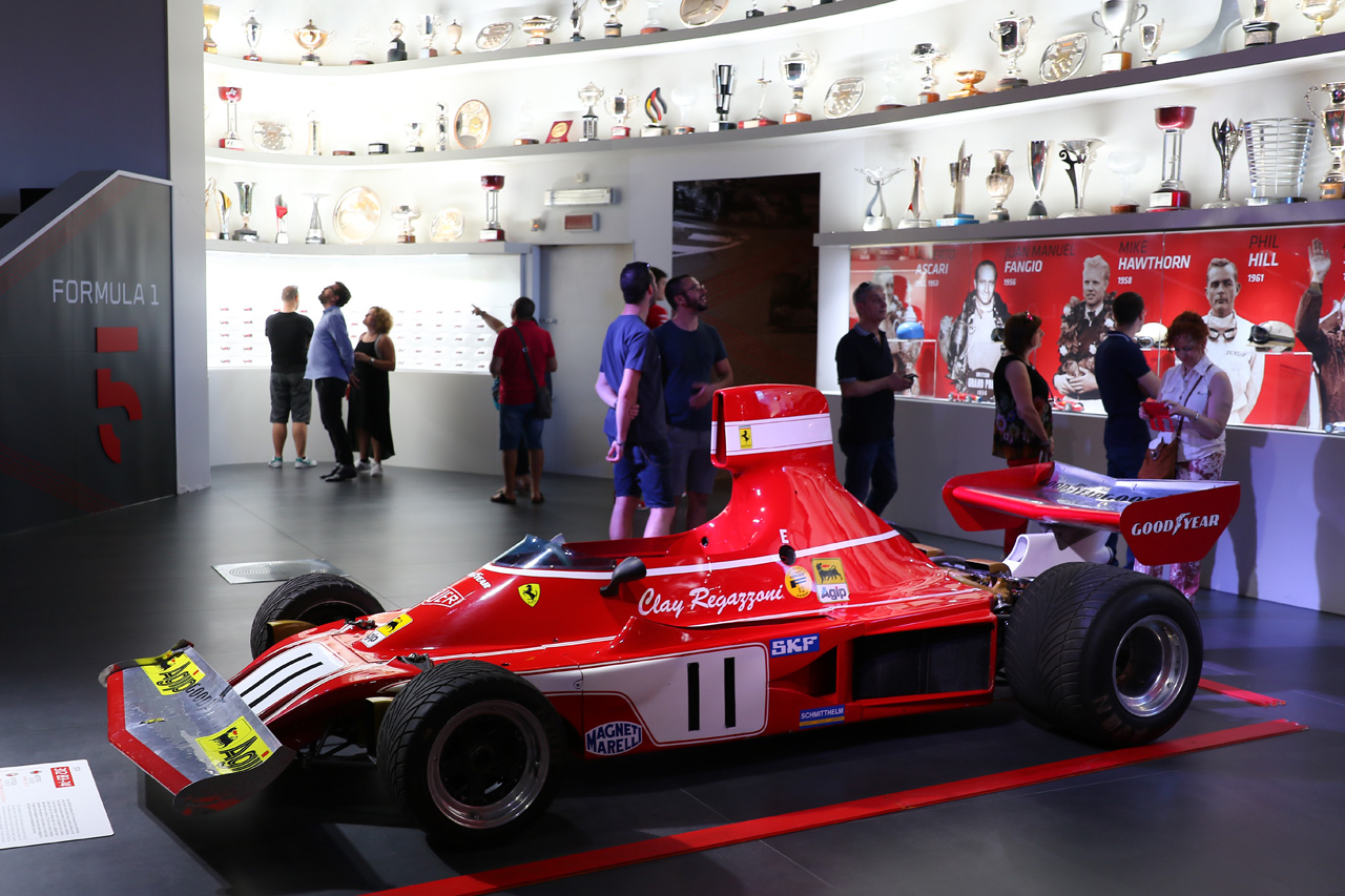 Le musée en lui même est intéressant mais un poil décevant. Oui alors je vous vois venir. Le mec on lui offre un weekend en Italie, pour voir des bagnoles et il crache dans la soupe. Ce n’est pas mon propos. Je veux juste dire que pour un musée dans le fief de la marque, on est en droit d’attendre plus. BEAUCOUP PLUS que ce qui est montré. Et ne me faites pas dire ce que je n’ai pas dit: frôler une F40 est quelque chose d’unique. Je me suis aussi extasié devant le jaune perlé de cette F12 TDF. Sans parler du fait que j’ai pu (enfin) voir une de mes Ferrari favorites pour la première fois de ma vie: la 512 BB de 1976. Ralala… Le reste de la collection qui est présenté est aussi très beau. En vrac, une Dino dans une couleur aubergine d’une divine beauté, un coupé 365 Daytona jaune sublime et j’en passe. Le hall dédié à la F1 est aussi très chouette, reste qu’une fois les 4 grandes salles faites, on passe dans un micro hall avec 458 Speciale (se prononce Spétchiaaalé), une GT4C Lusso, une 488, une 812 et CIAO BISOUS. Quoi c’est tout? Pas d’Enzo? Pas de F50? Pas de LaFerrari? Pas de pas de 250 GTO ni de Testarossa? Sérieusement? Bon. Comme je l’ai dit sur Facebook en sortant de là, c’est un peu comme si on visitait la Tour de Londres sans voir les joyaux de la couronne. Content et un peu déçu à la fois. Aurélie, malgré son regard de novice, a le même sentiment mitigé que moi. Il y a un petit côté foire à la saucisse où on cherche plus à te vendre le polo à 110€ (prix constaté en boutique) qu’à te montrer des voitures.