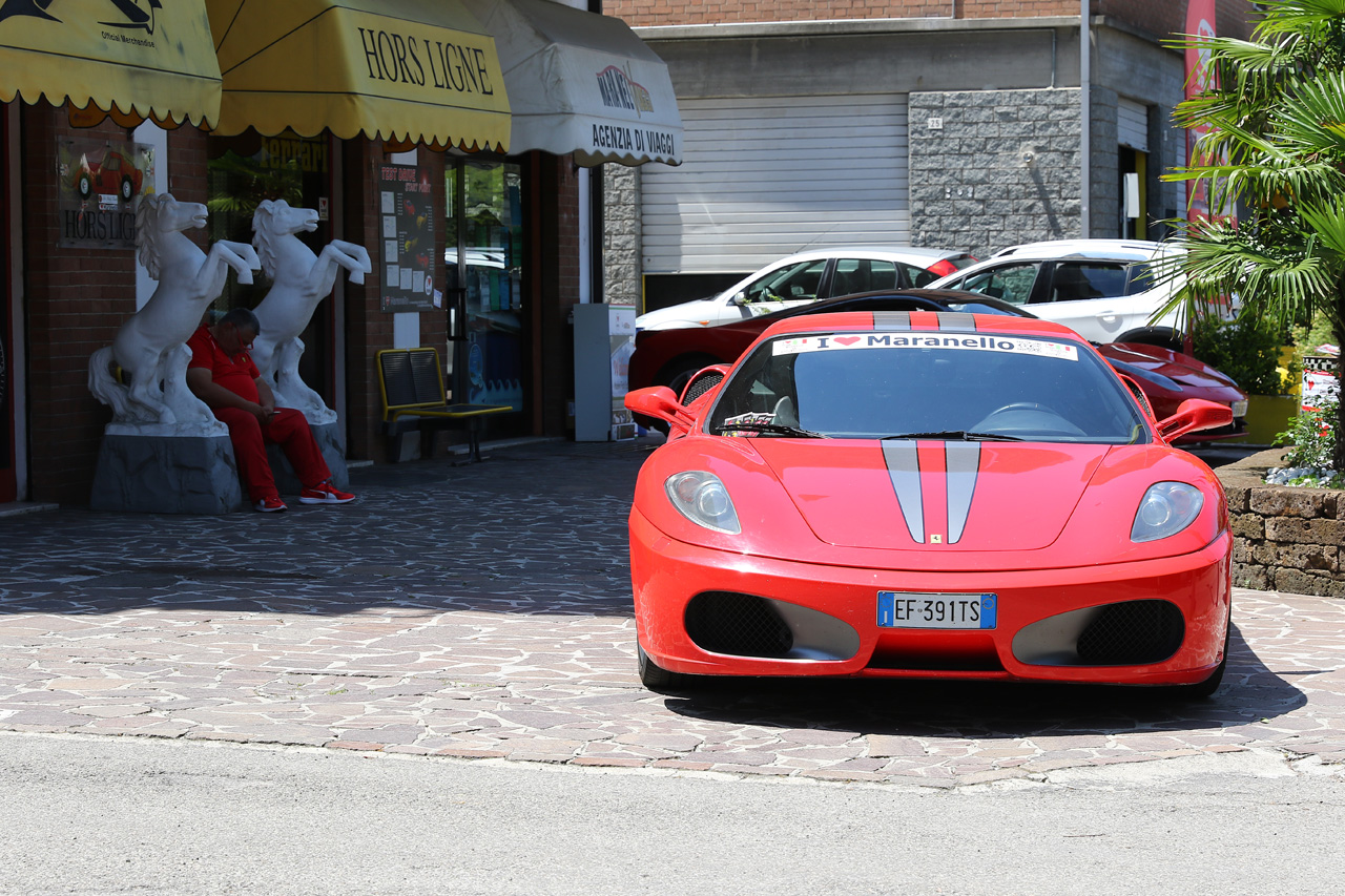 Il est autour de 10h quand nous prenons congés et prenons la direction de Maranello. Pour les 3 du fond qui ne connaissent pas la ville, pour faire simple, c’est « La Mecque » de l’automobile puisque ce n’est rien de moins que l’antre de Ferrari – n°3 en Italie dans l’ordre des choses les plus importantes après le Pape et le foot. Bref nous prenons notre temps en prenant la route panoramique, certes plus longue que l’autoroute mais aussi plus jolie. Ce qui nous permettra de constater que les italiens roulent comme des salopes (pardon aux salopes pour la comparaison). Limitation de vitesse? Rien à foutre. Bandes blanches, zébra? pareil. Priorité? C’est quoi ça? Bref…