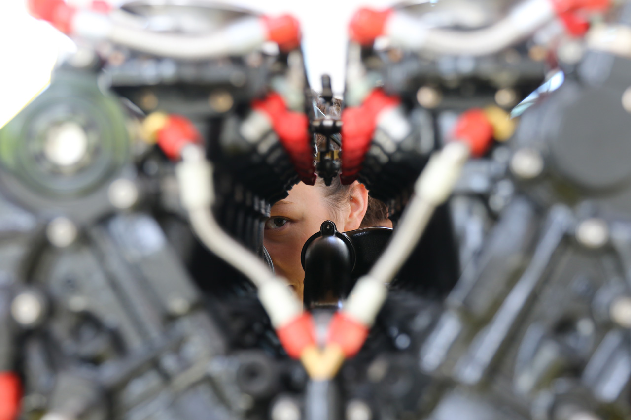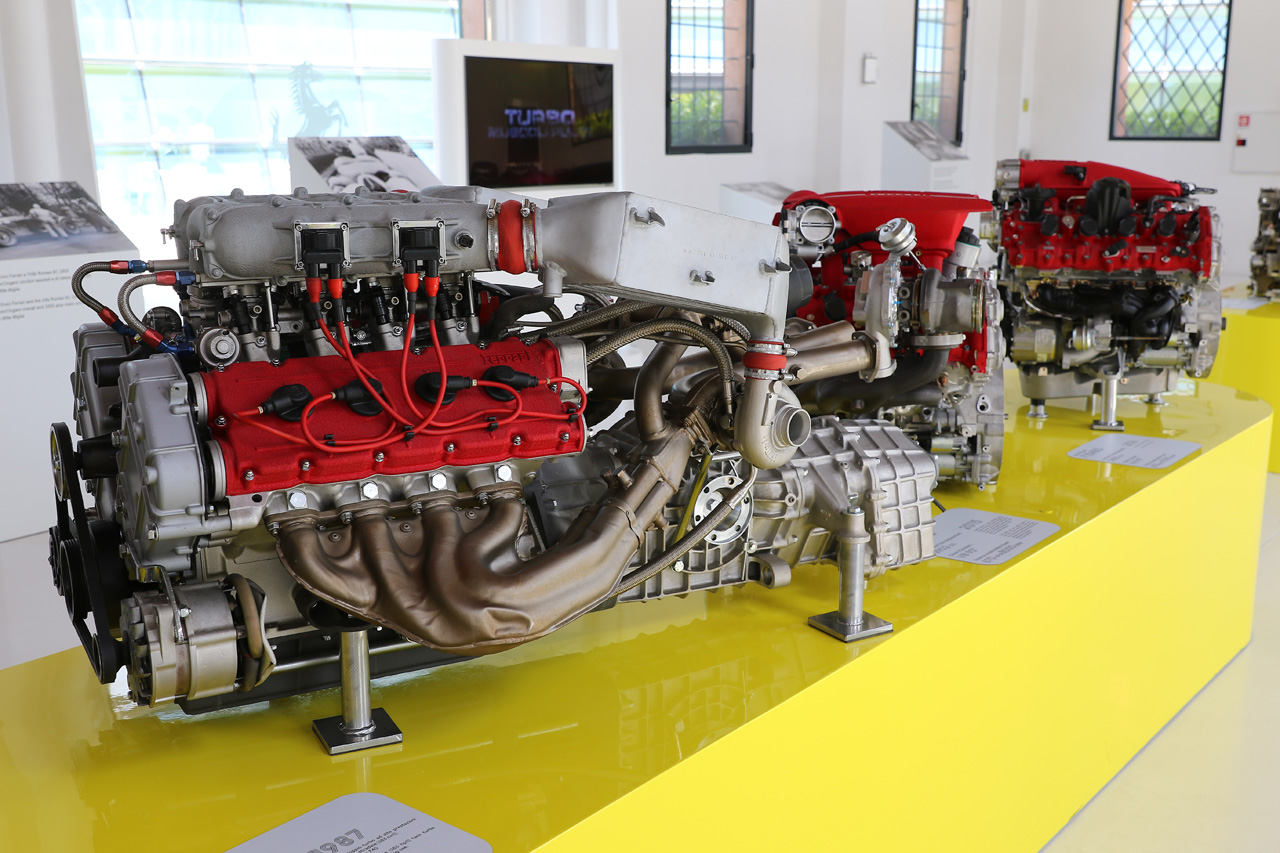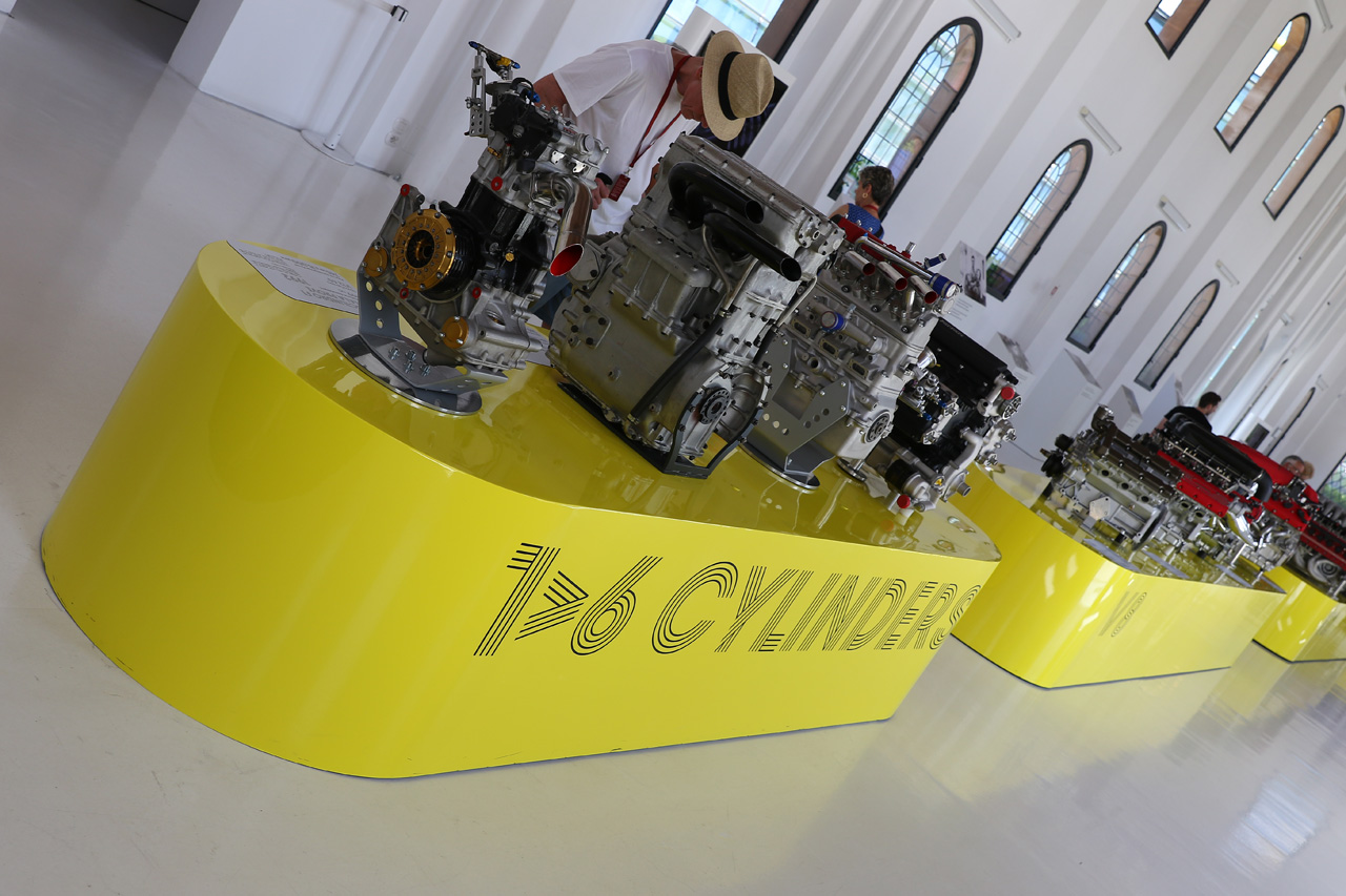 Hasard ou pas, le musée se trouve à 2 pas de l’usine Lustucru Maserati en plein centre ville. L’endroit est bien différent de celui de Maranello. Ici c’est plus design, plus contemporain, on se permet de sortir un peu de la bête revue de choses. Un petit bâtiment abrite une collection de moteur de tout type – du V6 au V12 en passant les 6 cylindres à plat, atmosphérique ou turbo. Ce sera l’occasion pour Aurélie de comprendre le fonctionnement d’un moteur. Car oui nous les cours de mécanique nous les faisons sur des moteurs Ferrari. ‘fin on fait surtout avec ce qu’on a sous la main *j’espère que vous visualisez bien mon air narquois en tapant ces lignes*.