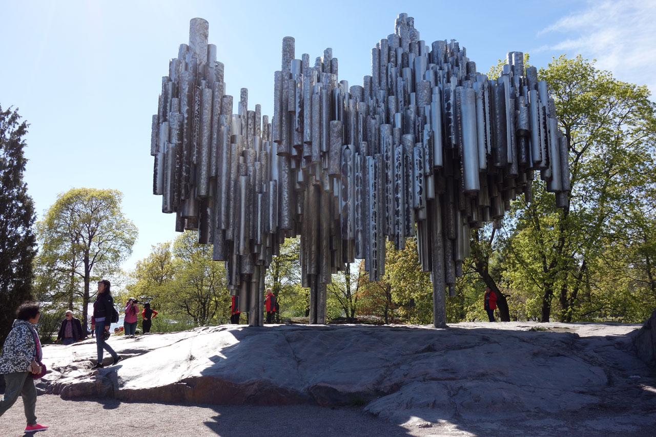 Je disais donc que se promener ici est sympa, la ville est aérée, il n’y pas trop de circulation même en heure de pointe, il y a pas mal de parcs, on voit et on entend beaucoup d’oiseaux différents et on rigole aussi beaucoup en voyant tous les chiens de la création se promener. En plus il fait un temps superbe. Quant au Sibelius Monument, c’est une « bête » sculpture dans un parc entouré par des hordes touristes chinois.