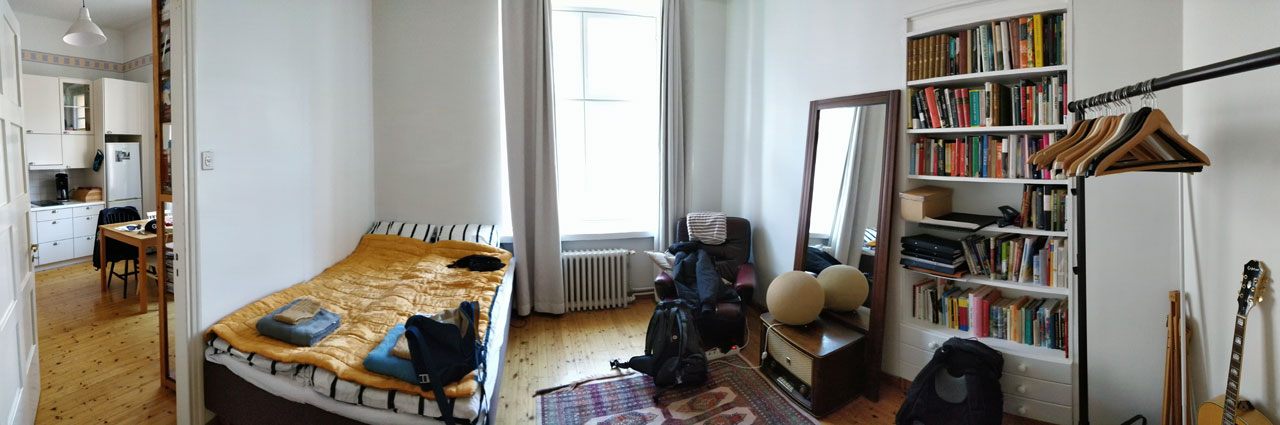 Sorti de la gare d’Helsinki, un rapide coup d’oeil sur le plan et hop nous voici parti vers un Kioski – sorte de supérette/point de retrait – où nous attendent les clés de notre AirBnB. Ca a pris montre en main 40 secondes, le plus long a été de sortir la carte d’identité pour le contrôle. Le logement est à 7/8 minutes de là à pied. Situé au 3ème étage, il donne sur une toute petite rue faussement calme car à côté se trouve un pont qui est un point de passage important. Le double vitrage fait le boulot – heureusement. L’appartement n’est pas très grand – au pif je dirais 25m² mais pour 2 jours ça ira très bien. Petite cuisine/salle à manger tout équipée avec ce qui est sans doute le plus petit duo d’électroménager que j’ai vu (lave ligne et lave vaisselle). Chambre correcte avec un lit idéal pour se tenir chaud l’hiver. Bémol la salle de bain qui réussit à être plus petite que celle de mon ancien appart’ avec le chiotte en plus à l’intérieur. Le seul point positif à ça est qu’on peut se laver les pieds en étant sur le trône.