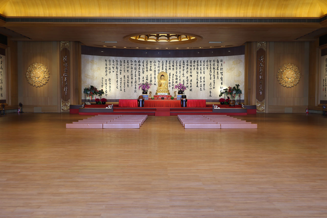 Nous partons ensuite vers la seconde partie du lieu qui se trouve être un immense hall dédié au fondateur du lieu Hsing Yun. Un moine aujourd’hui âgé de 92 ans et calligraphe assez génial. Nous passerons un certain temps dans ce hall car nous nous ferons alpagué gentiment par une nonne. Je ne sais pas si c’est le terme exacte en bouddhisme mais c’est comme ça que je la définirais. Dans un anglais assez surprenant, elle nous explique, en plus de leur signification, que sur les murs sont reproduites à l’échelle 1 des calligraphies du fondateur et que chacune d’entre elles a été réalisé alors qu’il avait perdu la vue pour cause de diabète. Elle en profite au passage pour nous dire qu’ils ont des branches partout dans le monde dont une à Vitry-sur-Seine. Si jamais ça vous intéresse j’ai l’adresse exacte.