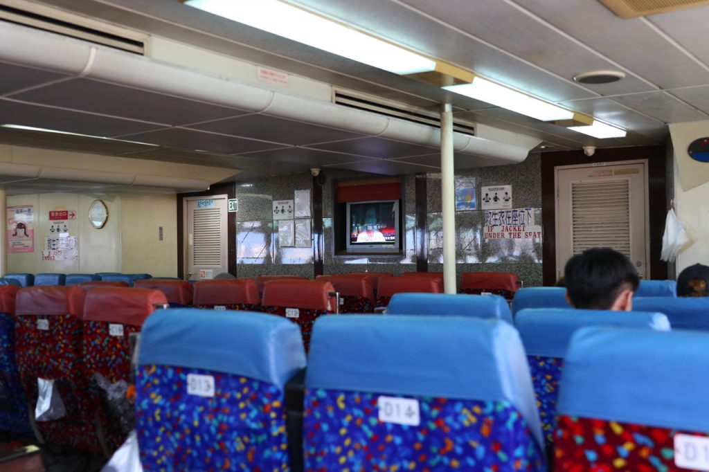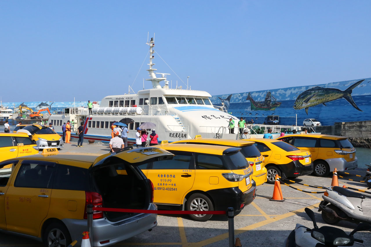 Une fois à Taitung, il a fallu trouver le port. Port qui n’est pas à Taitung même mais 6km au nord. Ensuite vous voyez le truc venir, il faut se garer. Après un tour pour rien nous arnaquons une place sur le quai puis filons dans le bâtiment qui fait office de billetterie pour les ferrys. L’endroit n’a pas dû bouger depuis 1970 tellement il est daté.