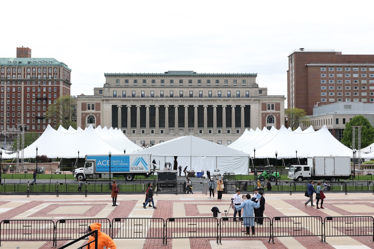 Quelques arrêts de métro plus tard, je précise au passage que la carte de métro est largement amortie malgré les kilomètres à pied, nous sortons devant la fac. Le campus principal est délimité par une immense grille mais on peut y pénétrer sans souci. Nous débarquons sur une grande esplanade avec gradins, tribunes et chapiteaux. Voyant les ouvriers s’afférer au démontage de tout ça et croisant moult étudiants avec leur espèce de robe bleu ciel, nous en déduisons que la remise des diplômes a eu lieu récemment. A côté de ça on en croise d’autres le nez sur leur ordi visiblement en train de potasser tandis que d’autres filent d’un bâtiment à l’autre l’air pressé. Bon en soit il n’y a rien de spé à voir, c’était plus de la curiosité.