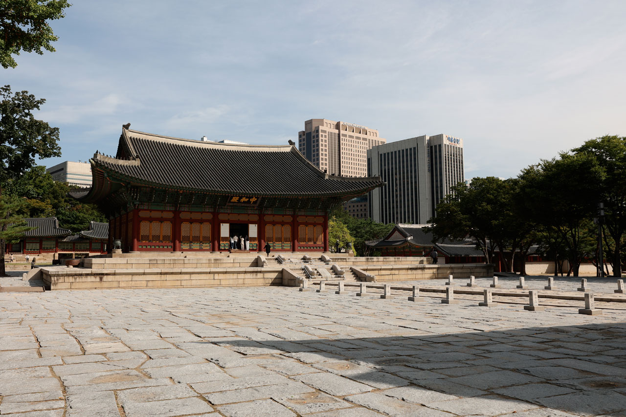 Après une nuit compliquée pour cause de décalage horaire (+ 7 heures dans ce sens), nous voila parti vers le Deoksugung – un des nombreux palais de la ville. Comme la plupart des dits palais c’est du « faux vieux mais vieux quand même ». Faux vieux parce que c’est plus récent qu’on ne le pense mais vieux quand même parce que ça a un peu plus d’un siècle. La raison est la guerre russo-japonaise de 1904 où les japonais ont purement et simplement colonisés le Corée et ont tout cramé. Ils n’ont été expulsé de Corée que suite à leur défaite en 1945.