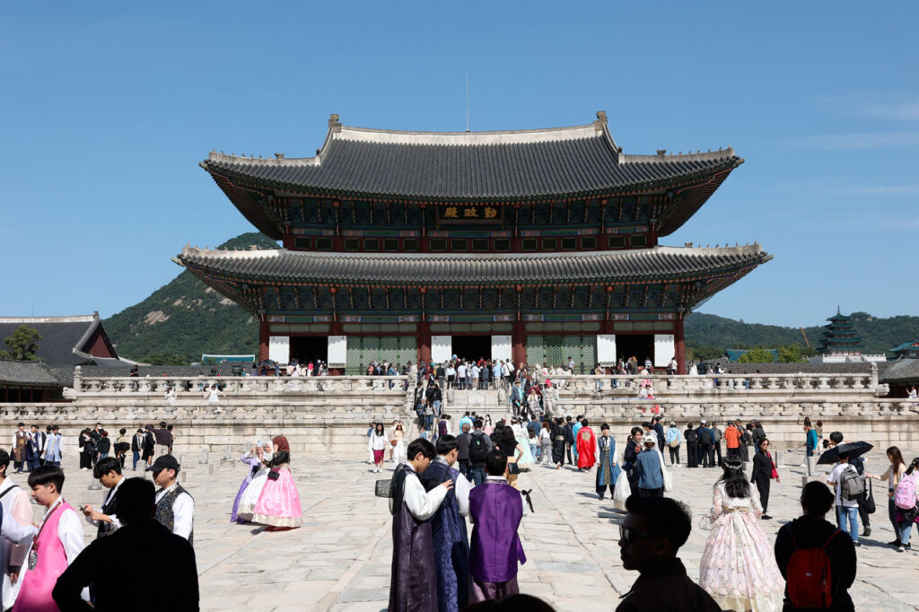 Nous repartons vers le Gyeongbokgung. L’endroit est très chouette, le chaud soleil aide à apprécier le lieu. Ce qui aide moins c’est la quantité affolante de touristes. Souvent vêtus de hanbok, l’habit traditionnel coréen. Pourquoi? Pour faire de l’appropriation culturelle comme le diraient les wokistes? Non. Parce qu’avec cette tenue, l’entrée en est gratuite. A 3 euros l’entrée, ça vaut le coup de payer 30€ la location à la journée… Mais si il n’y avait que ça. L’an dernier à New-York, les idiots qui faisaient n’importe quoi pour leurs photos Instagram m’avait déjà particulièrement exaspéré (euphémisme). Comme si c’était possible, aujourd’hui ce fut pire. Partout, tout le temps, des abrutis de tous pays/origines/religions nous ont pété les c******s pour leur selfie de merde. Ca pose son trépied dans le chemin et ça fait sa vie sans soucier des autres. Malheur à toi si tu oses apparaître dans le champ alors que ça fait déjà un moment que tu attends pour passer.