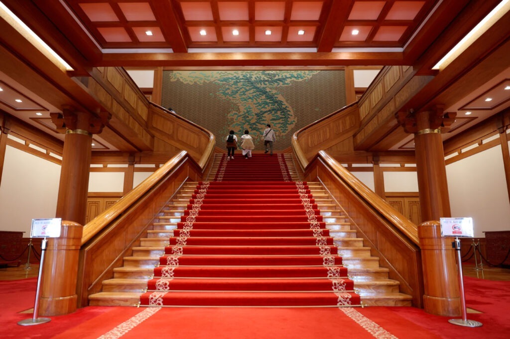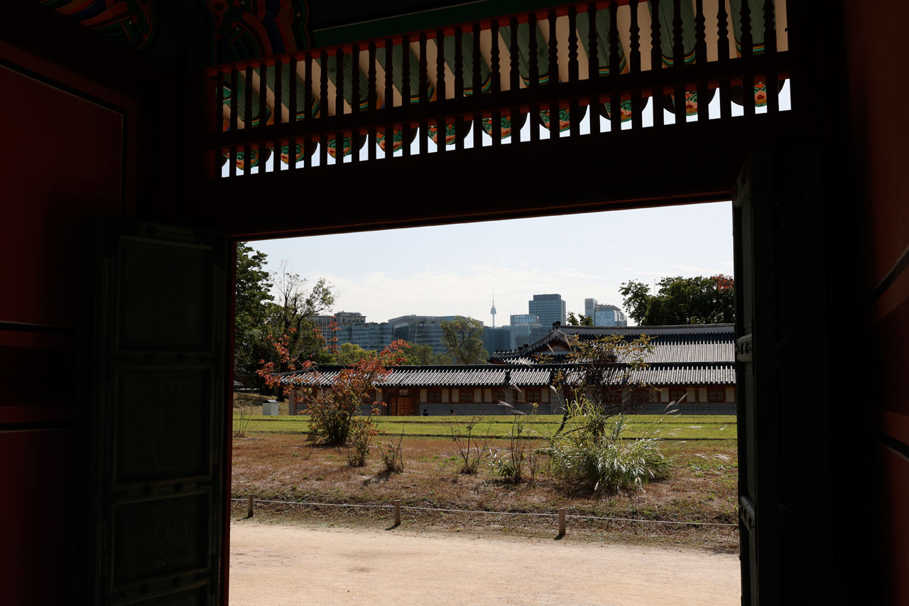 Cheongwadae c’est l’ancienne résidence des présidents coréen. Comme la présidence a démangé l’an dernier, l’endroit est depuis ouvert au public. Comme ça reste un bâtiment d’état, il faut montrer patte blanche pour rentrer. Rien de fou, juste donner son passeport, en échange on vous donne le droit de rentrer. Parce que oui c’est gratuit. Pour nous occidentaux, c’est juste un ancien palais présidentiel décoré avec un goût un peu douteux. Pour les coréens, c’est le signe de la bonne santé de leur démocratie (et ils y tiennent vu l’ahuri qui dirige le voisin 50 km plus au nord). Dans le bâtiment principal, on voit le bureau présidentiel (photo interdite), le bureau de la première dame (photo dispensable), quelques salles de réception (photo sans intérêt) et le grand escalier (spot photo incontournable). On peut ensuite aller voir (juste voir), l’ancienne résidence privée du locataire des lieux. C’est en style traditionnel coréen mais avec des volets en acier imitation bois, des vitres de 4cm d’épaisseur, des détecteurs de mouvements, des caméras infrarouges et ça c’est juste ce qui est « visible ». Sinon l’endroit est calme et superbe. Si la présidence vend, je suis preneur. Le jardin, la vue je signe quand vous voulez.