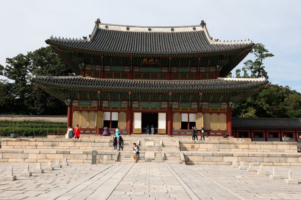 En sortant delà, nous décidons d’aller voir un village hanok (les ancêtres des coréens si vous voulez). Il en existe (soit disant) plusieurs qui sont préservés en ville. Ce qu’on appelle village s’avère être en fait quelques pâtés de maison qui sont envahis par les bobos du coin et les touristes (comme nous). Déçu mais pas trop car nous sommes passés dans des coins sympas. Là-dessus nous filons vers le dernier palais du jour: le Changdeokgung. A ce stade, vous vous en doutez, lui aussi a été cramé et reconstruit et on est plus ou moins encore une fois sur une architecture similaire. Ca reste néanmoins très chouette. Coïncidence (non), nous retrouvons la même bande de « d’influenceuses » qu’au Gyeongbokgung et leurs perches à selfion. Est-ce que je me suis embrouillé avec? Peut-être. Peut-être pas.