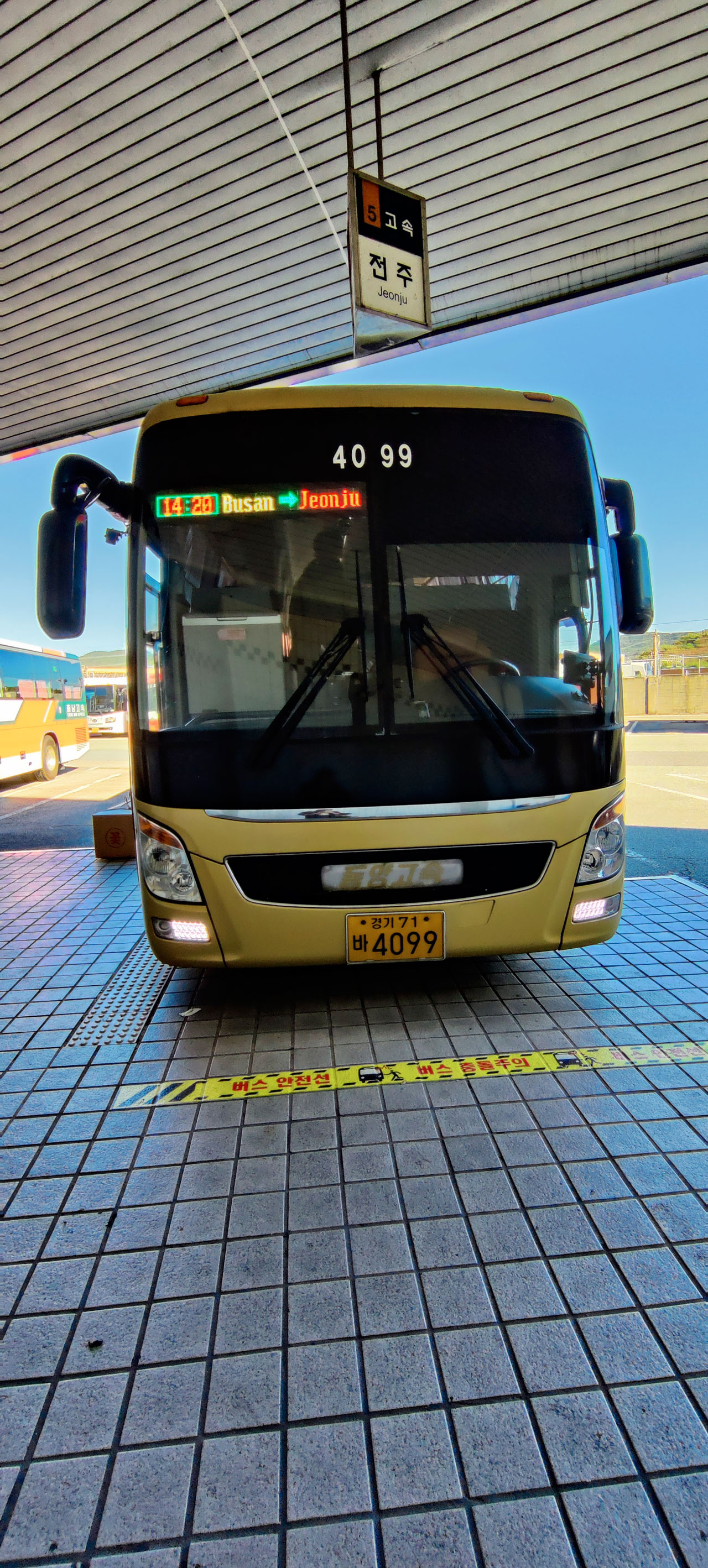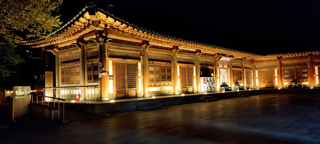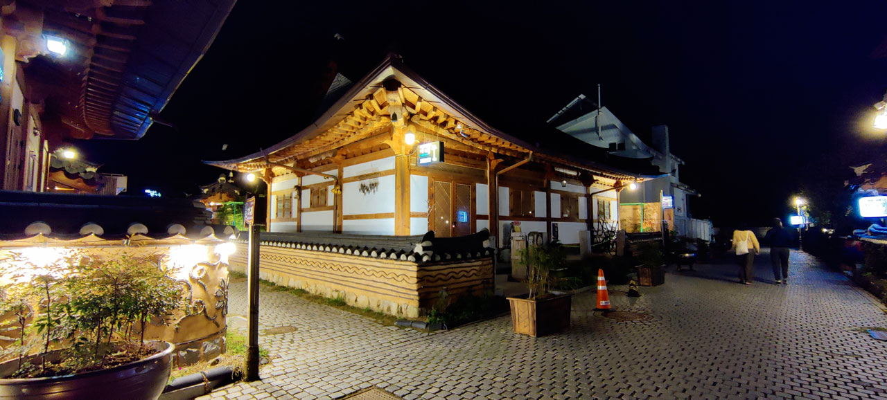 Le trajet devait durer environ 3h, nous mettrons finalement près de 3h40 pour rallier Jeonju. La faute aux embouteillages à l’arrivée.Une fois débarqué, la première impression de la ville fût pour le moins mitigée. Il fait « froid », nous avons perdu plus de 10° depuis ce matin, on a manqué de se faire écraser par un mec qui a grillé un feu et après presque 4h de route, nous sommes un peu saoulé car en plus nous avons faim et il faut aller à l’autre bout de la ville pour notre maison d’hôtes. Je vous épargne le trajet en bus avec un psychopathe au volant.