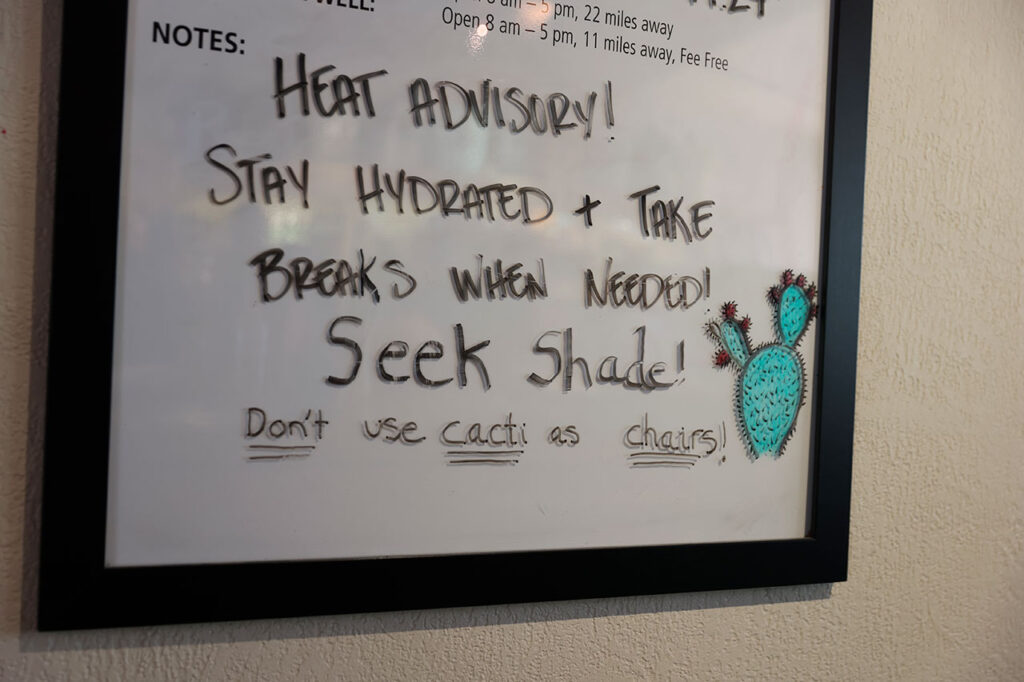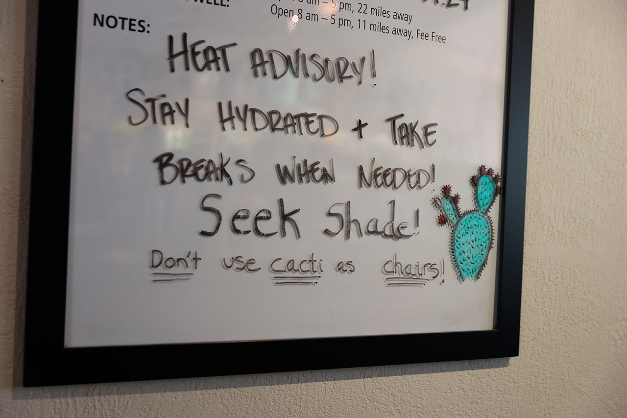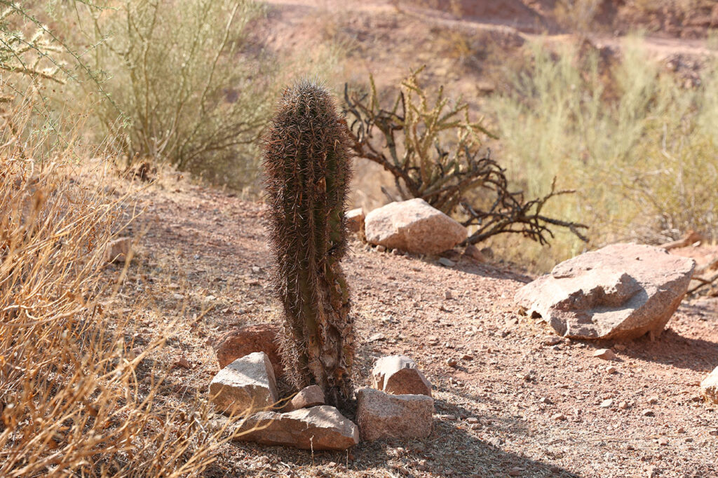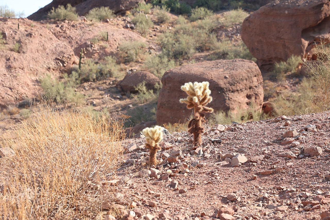 La grande idée du jour (ou de la veille je ne sais plus) est d’aller se faire la rando qui mène au sommet de Camelback Mountain, une petite montagne située au milieu de la ville de Phoenix. Sur le papier, ça l’air un peu énervé mais vraisemblablement rien d’insurmontable. Sauf qu’il est environ 8h30 lorsque nous arrivons, qu’il fait déjà 33°, que la nuit la température ne tombe pas sous les 30° et que donc la roche ne refroidit pas. Ce qui fait que ça tabasse sévère. Ca plus la surprise de découvrir que ce sentier à priori anodin est un fait un véritable enfer.