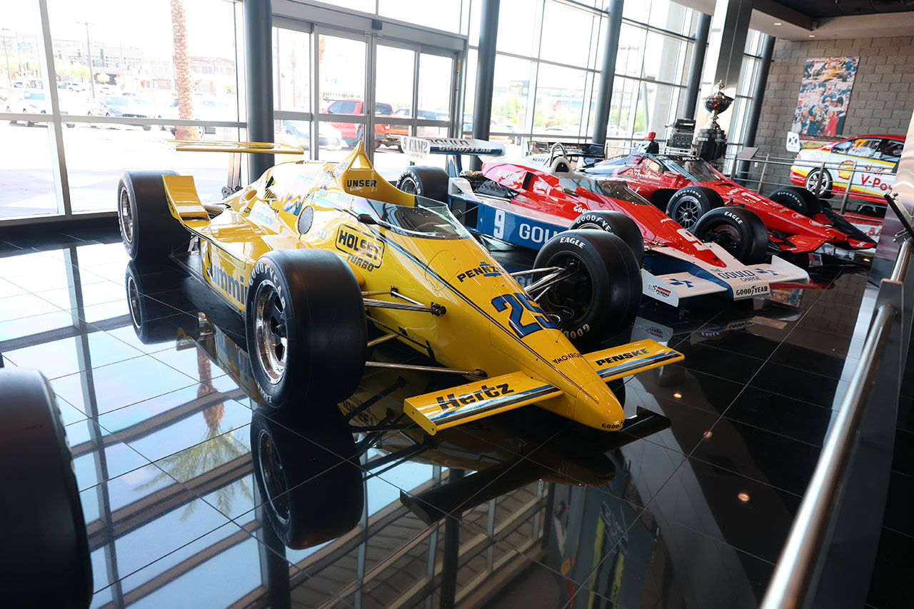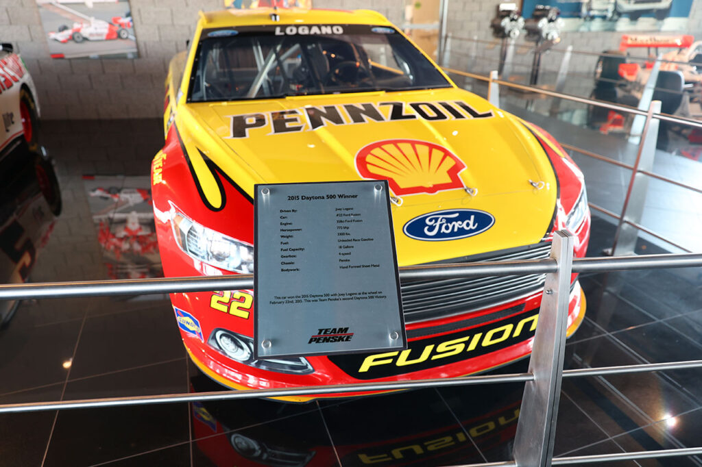 Après ce demi échec, nous revenons à l’hôtel. Enfin pas tout à fait. Nous serons littéralement de l’autre côté de la rue au Penske Racing Museum. Comme son nom l’indique c’est un petit musée qui regroupe quelques unes des voitures des écuries Penske de Nascar et d’Indy Car. Pour faire un parallèle avec la F1, imaginez qu’une écurie comme Ferrari ouvre un musée regroupant la plupart des voitures de courses victorieuses dans différentes séries.