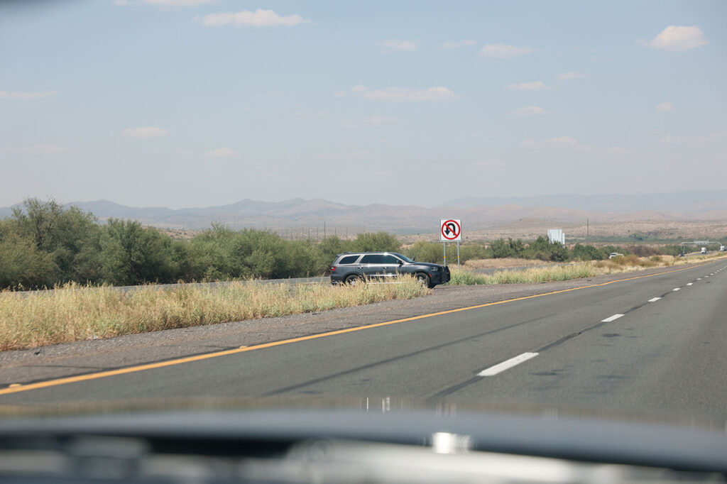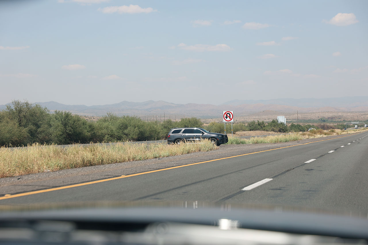 Après, c’est officiellement le grand départ de notre road trip de 3000 et quelques kilomètres. Nous partons vers le nord en direction de Sedona, notre destination du jour. C’est l’occasion de voir des paysages de western absolument sublimes. Aurélie a conduit un bon bout de route en respectant scrupuleusement les limitations de vitesse sachant qu’il y a des flics en voiture banalisées un peu partout (voir les photos). Je l’ai senti un peu circonspecte face au tableau bord de la voiture. C’est sur que comparé à la Clio, c’est un peu la Nasa tous ces écrans. En bon geek, ça me va bien. Et puis les sièges ventilés… petit bonheur.