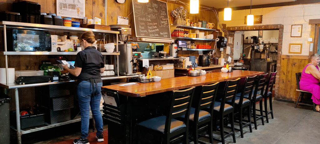 Sur les coups de midi nous stoppons à Rock Springs, un endroit que nous avons trouvé par hasard avant de partir. Ce petit resto au milieu de nulle part est connu dans tous l’état pour ses tartes. C’est dans son jus et c’est typiquement le genre d’endroit que nous recherchons pour nous arrêter. Aurélie optera pour une salade aux noix et aux cranberries, je me rabattrais sur un sandwich au poulet. La tarte au citron meringué sera le clou dans le cercueil.