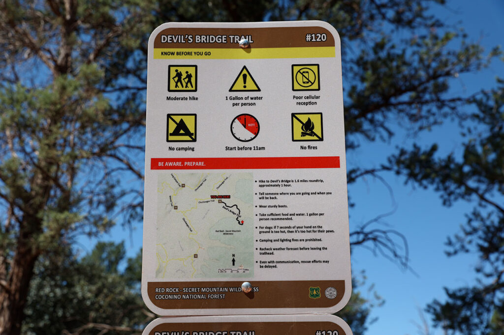 Direction le Devil’s Bridge Trail pour aller voir… le Devil’s Bridge. Une fois sur place, nous constatons que le parking est déjà plein. Oh les gars, il est 8h30 du matin! Que faire? Soudain je me souviens avoir vu/lu qu’il y avait une autre parking plus loin. Le « un peu plus loin » se transforme en 2 kilomètres mais le parking est bien là. Ce détail va faire toute la différence.