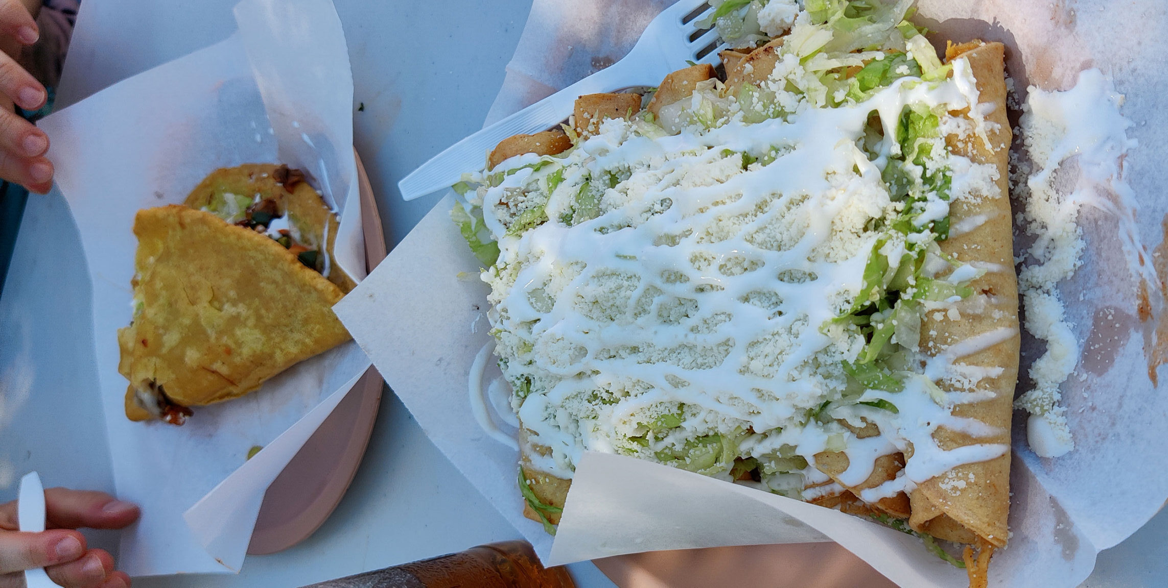 Nous repassons à l’hôtel pour un ravito en eau puis comme il fait faim, nous cherchons un endroit pour déjeuner. La solution sera trouvé à 100 mètres de l’hôtel. Une remorque qui fait de la bouffe mexicaine avec les ouvriers du bâtiments qui font la queue en attendant leur repas. Aurélie qui me dit « mais c’est comme à la télé ». Bah oui. Et en plus c’était délicieux.
