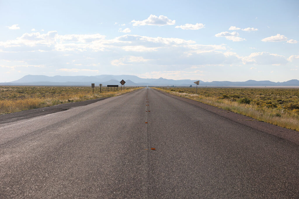 Notre destination du jour est la petite ville de Magdalena dans l’état du Nouveau-Mexique. Pourquoi ce point de chute? Un peu comme Holbrook hier, le choix s’est fait en fonction de l’évolution du projet de voyage, des choses à voir et des distances à parcourir. Nous aurions pu rester sur notre idée originale et prendre l’Interstate 40 (encore lui) tout du long mais quel intérêt? Sur ce trajet là, il n’y a rien à voir. Alors qu’en passant par le réseau secondaire, les paysages sont aussi fous que la route chiante et droite (et ce n’est que le début croyez moi).