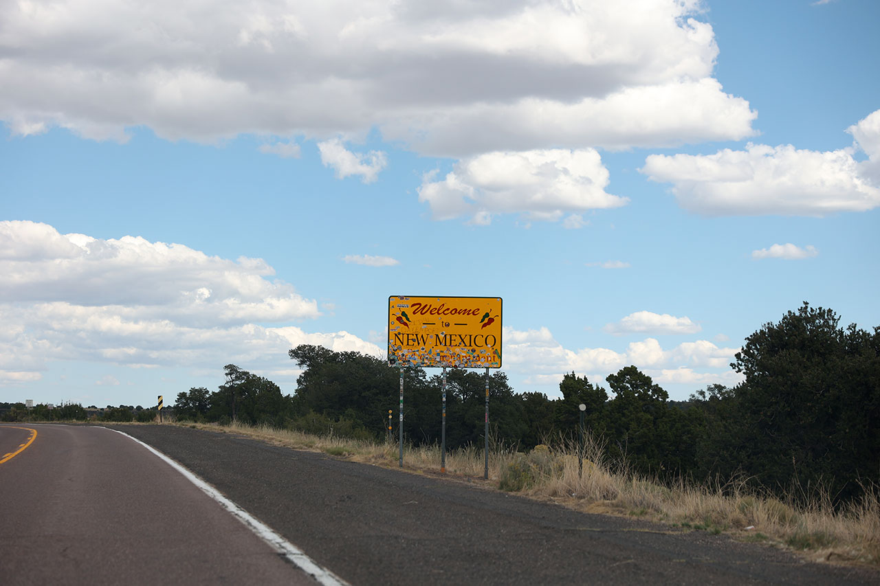 Nous passons la frontière du Nouveau-Mexique, ce qui fait que j’ai officiellement visité 27 états sur 50. Aurélie en est à 6 (pour l’instant). En passant la frontière, nous avons aussi changé d’heure. Hé oui. De 9h de décalage avec la France, nous sommes passés à 8. Je vais aussi en profiter pour rectifier ce que j’ai dit à propos du point le plus haut du voyage. Hier 2200 mètres d’altitude, aujourd’hui 2370 mètres. Quant aux paysages du Nouveau-Mexique, c’est très très différent de ce à quoi je m’attendais. Je pensais voir quelque chose ressemblant aux alentour de Phoenix, du désert bien rocheux avec des cactus. En fait non. C’est très vert et montagneux et c’est absolument splendide. Cet état gagne à être connu.