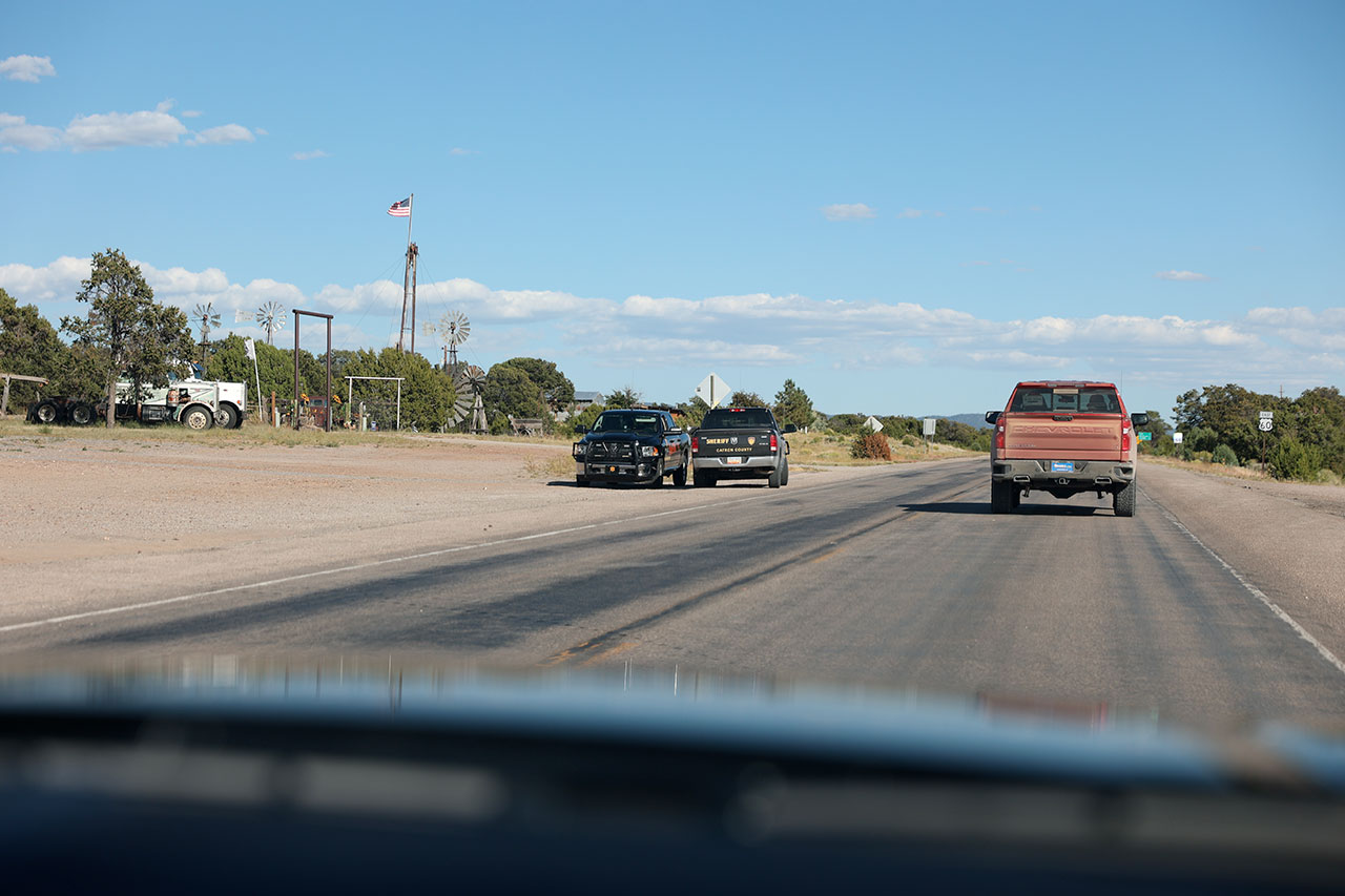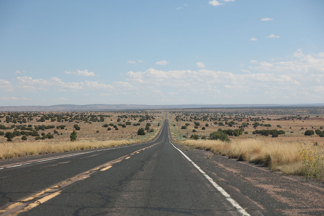Notre destination du jour est la petite ville de Magdalena dans l’état du Nouveau-Mexique. Pourquoi ce point de chute? Un peu comme Holbrook hier, le choix s’est fait en fonction de l’évolution du projet de voyage, des choses à voir et des distances à parcourir. Nous aurions pu rester sur notre idée originale et prendre l’Interstate 40 (encore lui) tout du long mais quel intérêt? Sur ce trajet là, il n’y a rien à voir. Alors qu’en passant par le réseau secondaire, les paysages sont aussi fous que la route chiante et droite (et ce n’est que le début croyez moi).