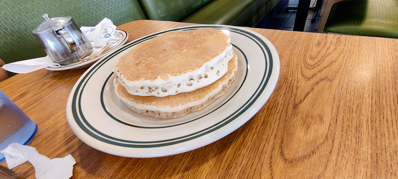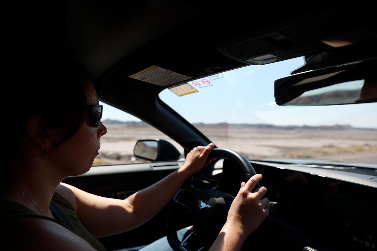 Le petit dèj est copieux, les pancakes aussi monstrueux que bons, le paillasson est relevé juste ce qu’il faut, l’omelette dégouline de fromage et le bol d’oatmill d’Aurélie est très costaud. Tout ça pour le même prix que le petit déj’ dans un Campanil de province, la qualité et la quantité en plus. En sortant, après avoir été rattrapé par la serveuse sur le parking parce qu’Aurélie avait oublié son téléphone sur la banquette, nous filons faire le plein. A ce sujet, la Mustang est étonnamment sobre. Il faut que je refasse le calcul précisément mais on doit tourner autour des 8l/100km. Et pourtant ni Aurélie ni moi ne nous privons de « mettre le pied dedans ». Parlant, de ça, aujourd’hui c’est Aurélie qui conduit. Sur les 380 kilomètres du jour, elle en fera 330. Pas mal pour quelqu’un qui conduit peu.