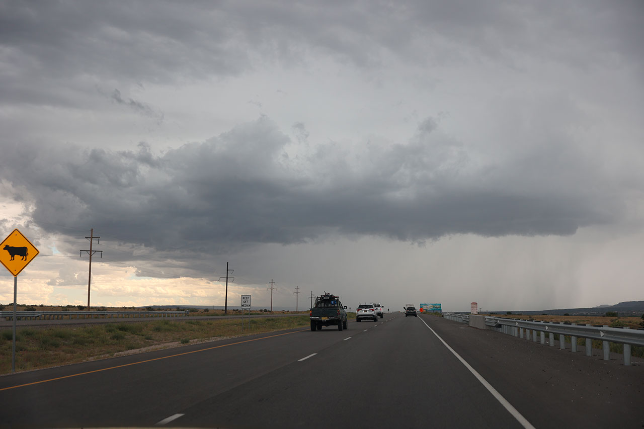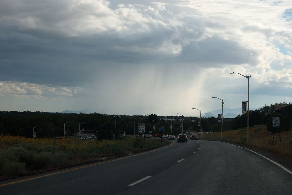Honnêtement Taos bof. Sorti de la jolie place principale de la ville, c’est un peu décevant. Certes, nous n’avons pas fait la route avec tous les points de vue du coin. Mais même si nous avions voulu, la météo nous en aurait empêcher. Les orages annoncés vers le milieu de l’après-midi ont débuté plus tôt prévu. Nous avons pris une giga rincée en sortant du resto ce midi.