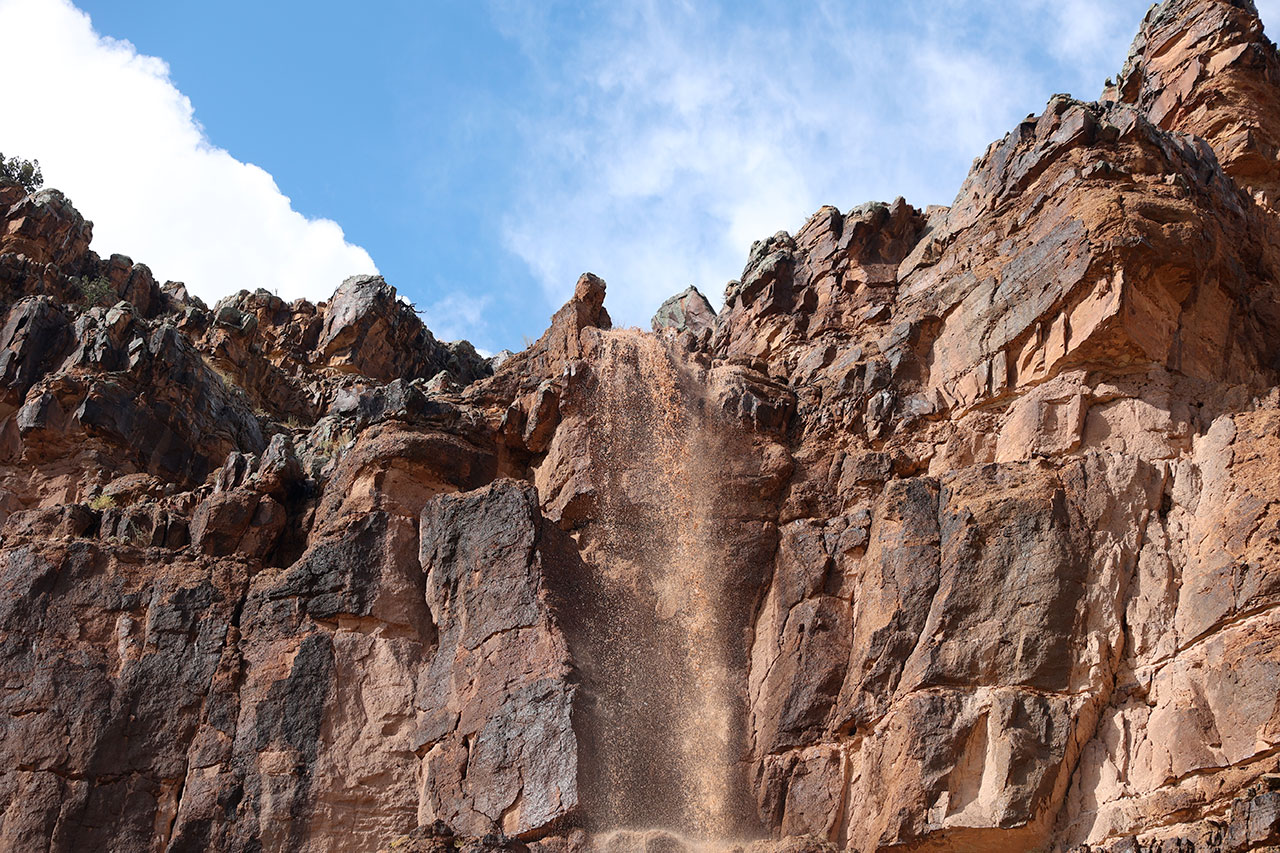 La route jusqu’au point de vu se fait tranquillement jusqu’à ce que d’un coup un mur d’eau s’abatte sur nous. Aurélie ne voyant plus la route, décide de stopper sur le bas côté. Nous trouvons un endroit pour nous arrêter puis attendons que ça se calme. A peinee 5 minutes plus tard nous sommes repartis. Lorsque nous arrivons enfin à notre objectif, il pleut toujours des cordes. Cela dit comme ici, les orages sont souvent soudains et très intenses mais s’arrêtent comme ils ont commencé, nous décidons de patienter. Aurélie stoppe la voiture bien en retrait sur le bas côté puis l’attente commence.