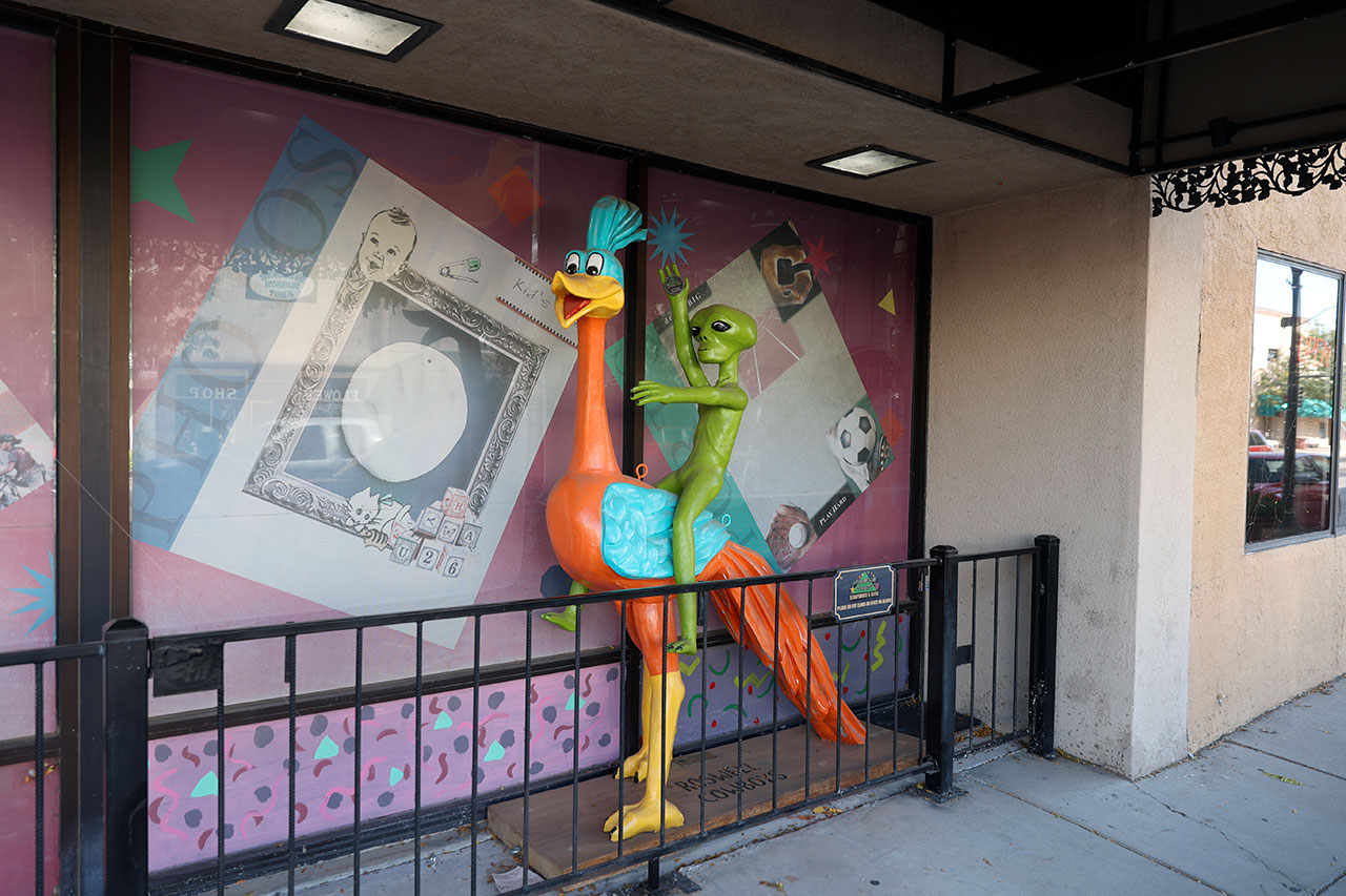 Roswell, ville mondialement célèbre pour son soit disant crash de soucoupe volante. Sauf que le crash en question a eu lieu à Corona, à quelques kilomètres de là. Le fait est que c’est Roswell qui est devenue célèbre car c’est la police de Roswell qui a couvert la chose. Tout ça pour dire que cette ville est une gigantesque piège à gogos ouvert parce qu’à part des magasins de souvenirs à la vitrine plus ou moins angoissantes, un McDo en forme de soucoupe volant et une quantité ahurissante de témoins de Jéhovah, il n’y a rien. C’est tellement surcoté que même l’office du tourisme local propose comme attraction des boutiques de souvenirs. C’est vous dire. Je n’en attendais rien et je suis quand même un peu déçu. Cette sympathique blague nous aura quand même coûté 1h. Après ça il reste encore 6h de route et il faut en plus avancer d’une heure à la frontière du Texas car on change de fuseau horaire (encore).