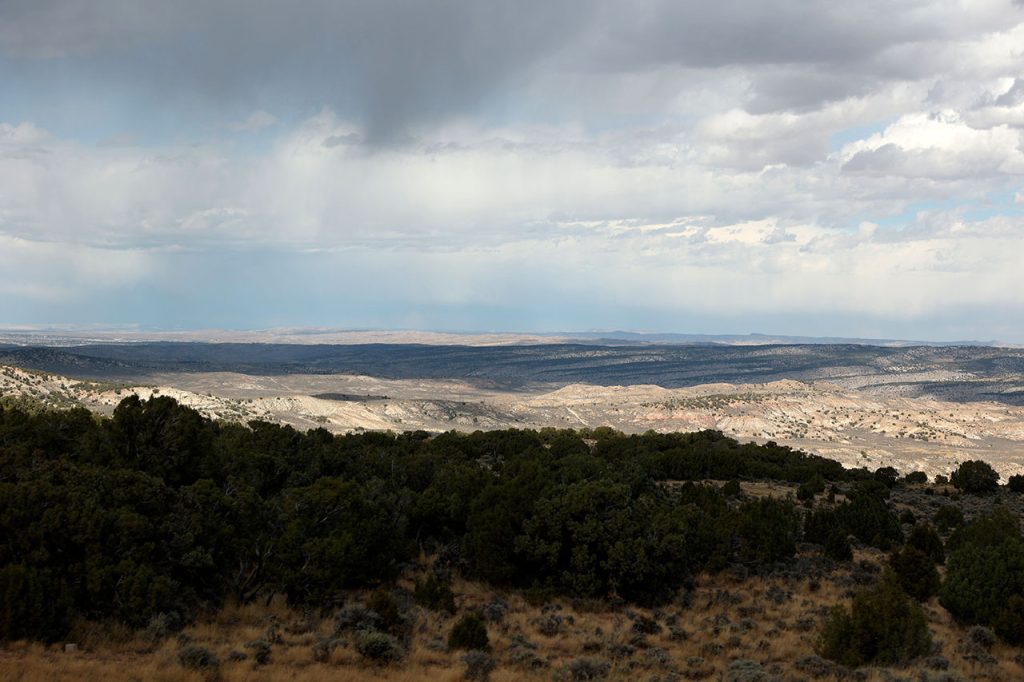 Le reste de la route sera tout de même un peu moins sexy. Nous récupérons l’Interstate 70 en direction de Denver puis filons vers l’est en direction du Colorado (l’état). Nous quitterons l’Interstate pour le réseau secondaire quelques kilomètres après la frontière entre l’Utah et le Colorado. L’est du Colorado est du genre pelé. La plaine comme la montagne sont usées par le vent. Donc pas ce que nous avons vu de plus beau. Puis la route grimpe et nous passons un col autour des 2500 mètres d’altitude. Le reste est d’un ennui mortel jusqu’à la ville de Rangely où nous stoppons pour déjeuner. Pas de la grande cuisine mais ce qu’on trouve dans les stations servies dépanne.
