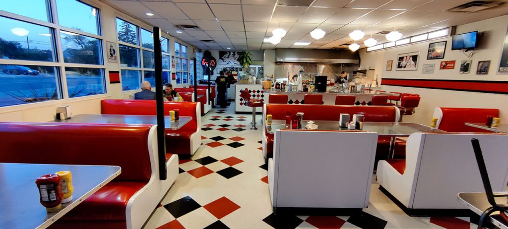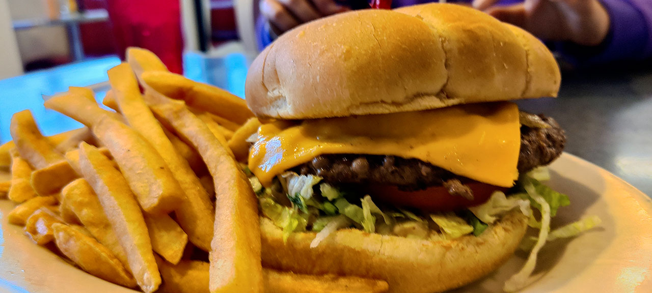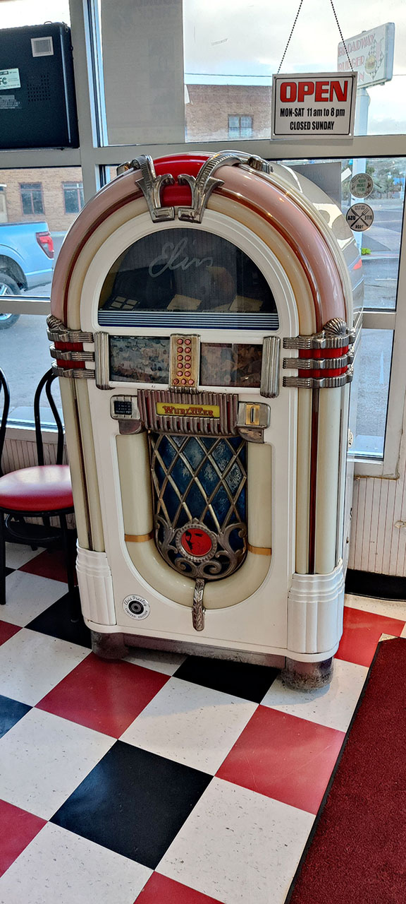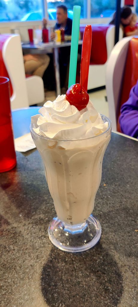 Je ne sais plus par quel hasard j’ai trouvé un « diner » à l’ancienne en ville. C’est donc là que nous avons dîné. Aurélie a pris un club sandwich tandis que j’ai opté pour un burger au wapiti. Vous avez bien lu, du wapiti. C’est pas mal, le goût est assez marqué, un peu comme du cerf. Le clou dans le cercueil sera le milkshake aux proportions stupides mais au prix imbattable: 4,3€. 31€ à deux, on sent qu’on a quitté les endroits touristiques. Probable que ce ne soit pas la même chose demain soir.