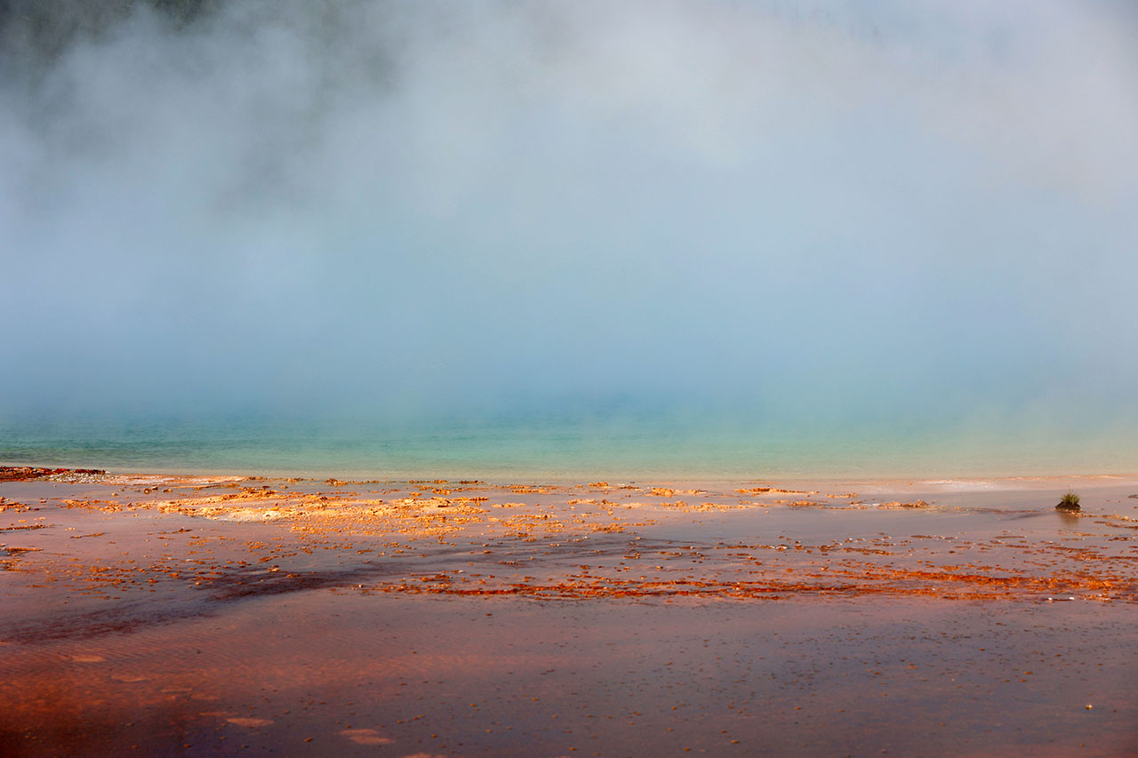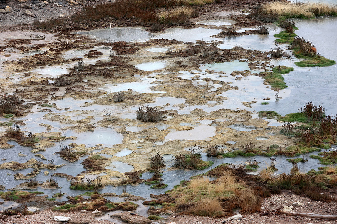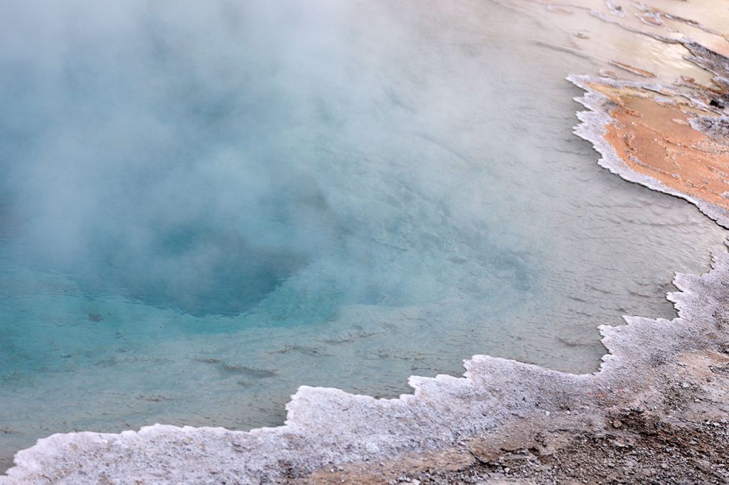 Nous repartons en direction de plusieurs zones remplies des multiples de geysers et autres eaux ferrugineuses. Comme il s’agit de l’endroit le plus visité du parc et qu’en plus nous sommes samedi ces endroits dégueulent de monde avec en plus des cars vomissant des hordes de chinois. Ca restera malgré tout relativement gérable.