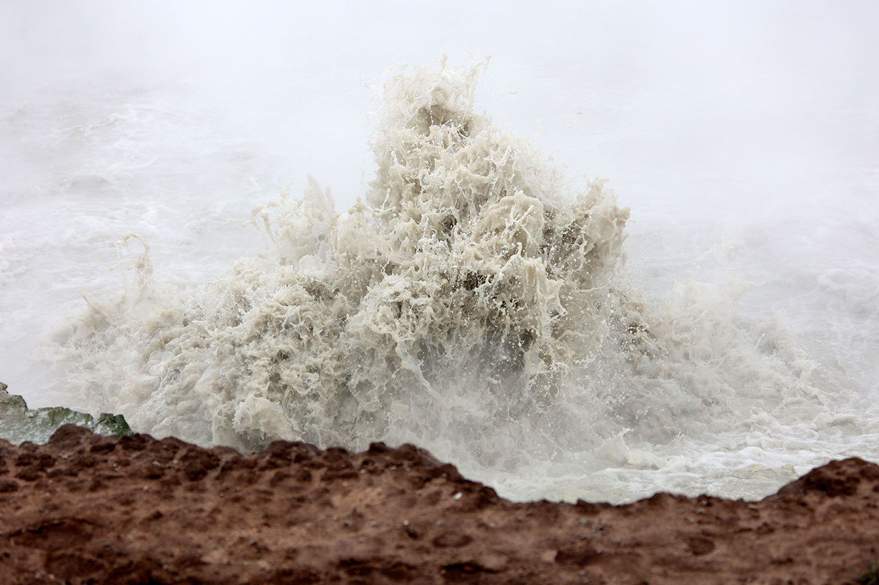 Pour voir les geysers c’est très simple, il suffit de rester sur le ponton en bois et de marcher en direction de la fumée blanche – en l’occurrence de la vapeur d’eau. Du coup, nous autres porteurs de lunettes passons de grands moments de bonheur car avec la buée sur les carreaux on ne voit plus rien. Sorti de ça c’est très chouette. Aurélie était un peu déçue par l’absence d’odeur d’oeuf pourri typique du souffre et marres de boue qui font « bloup bloup ».