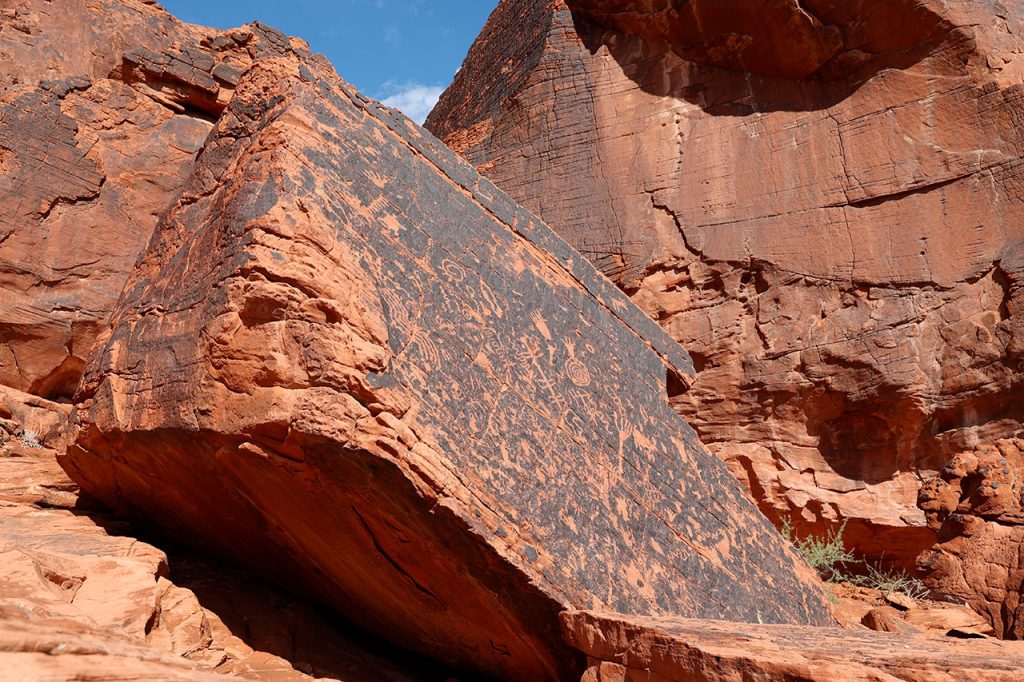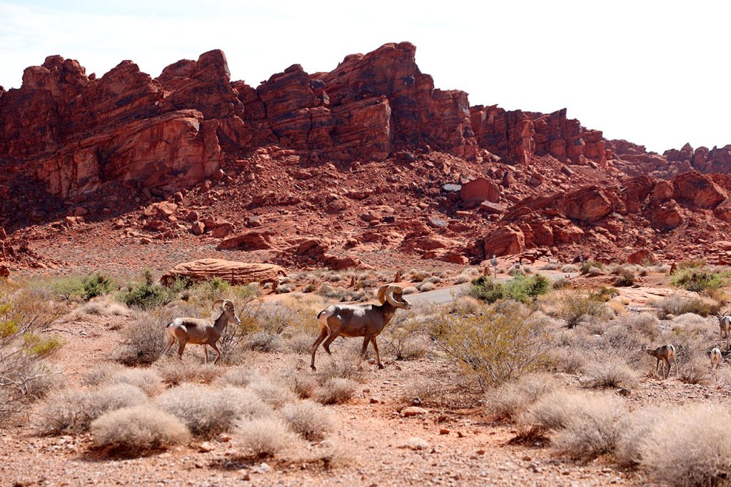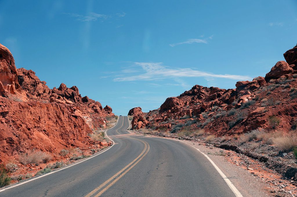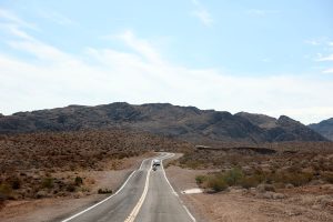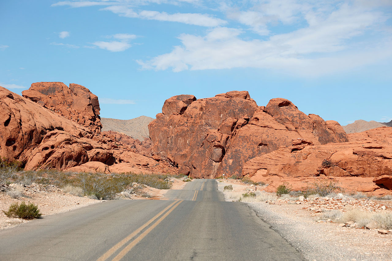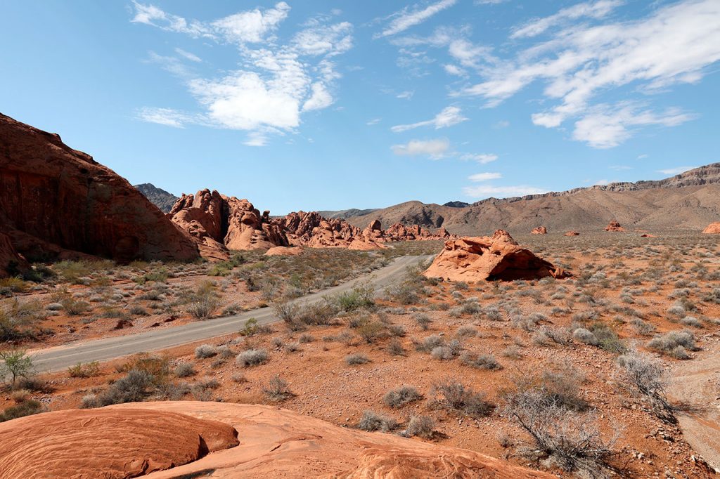 Le trajet jusqu’à l’autoroute nous fera passer devant le magasin de prêteur sur gages vu et revu à la télé. Puis direction l’interstate 15 en direction de Salt Lake City. Ca roule tranquillement. Quelques kilomètres au nord de la ville, nous laissons de côté le Las Vegas Motorspeedway, circuit de NASCAR de la ville. La route jusqu’à la sortie pour le parc de Valley Of Fire (littéralement la vallée du feu) est facile. C’est après que ça se corse. Aurélie, qui a pris le volant, se retrouve aux prises avec une route parfois inondée, parfois pleine terre. La faute aux violents orages de la veille sur le secteur.