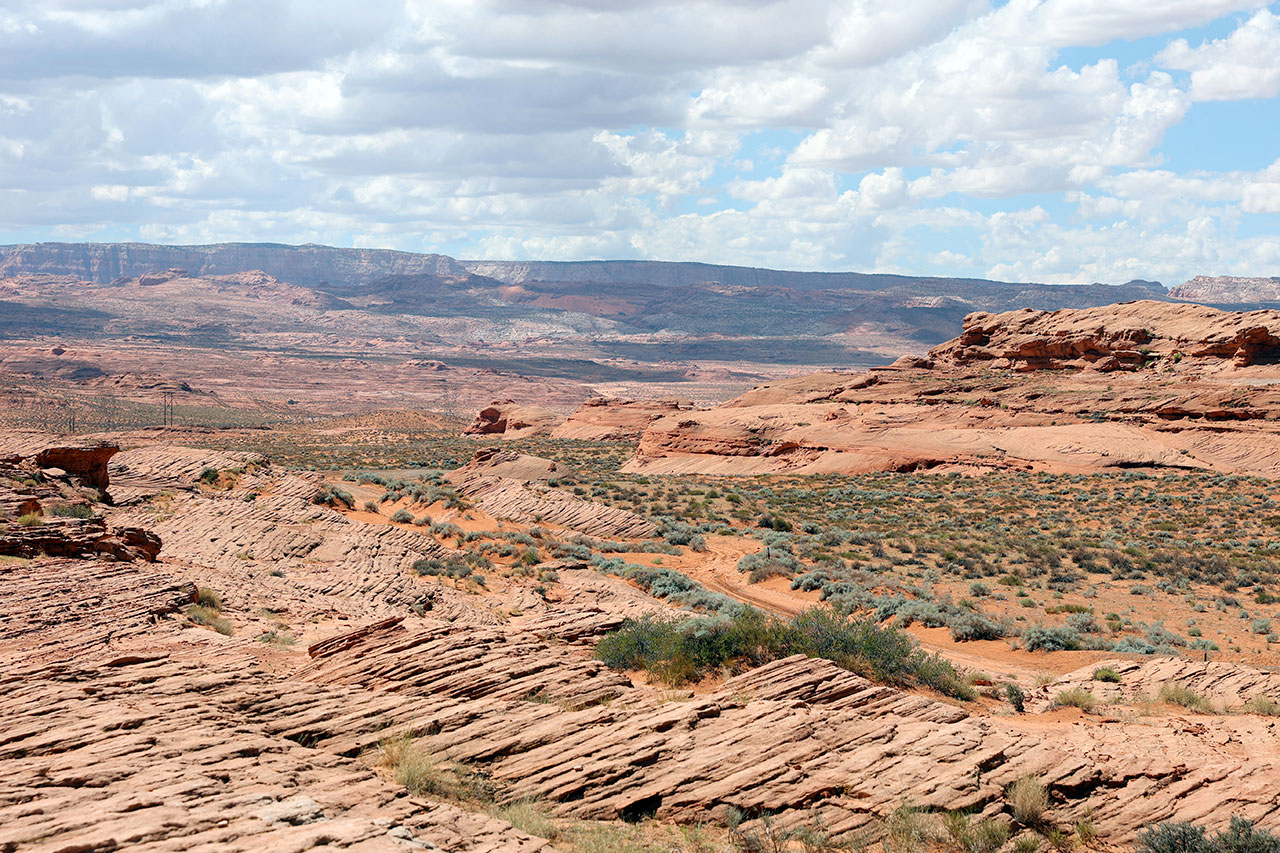 Niveau paysage, entre l’Utah et l’Arizona, c’est la surenchère à celui qui aura les plus beaux. La route entre Kanab en Utah et Page offre un décor totalement absurde. Comme l’a dit hier la mère d’Aurélie: « l’attaque de la diligence c’est pour quand? ». Chaque virage est un décor de film potentiel.