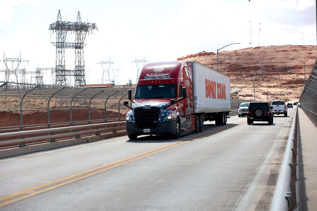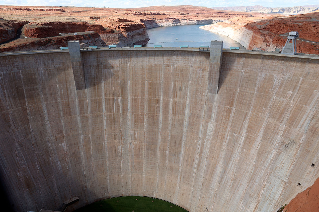 Retour à la voiture pour parcourir les 6 derniers kilomètres. L’autre jour nous étions au barrage Hoover qui marquait la fin officielle du Grand Canyon. Aujourd’hui nous sommes passés au barrage de Glen Canyon qui lui marque le début officiel du Grand Canyon. Là encore, arrêt obligatoire pour quelques photos parce que l’endroit est spectaculaire. D’autant que le pont qui surplombe le barrage est bien plus petit et tremble à chaque camion qui passe.