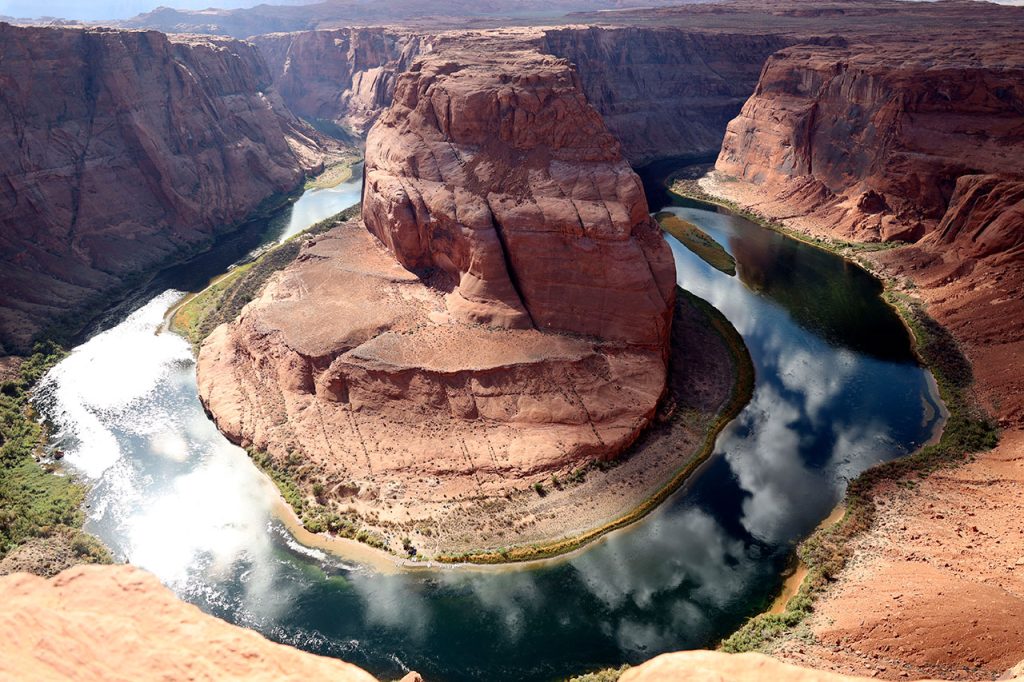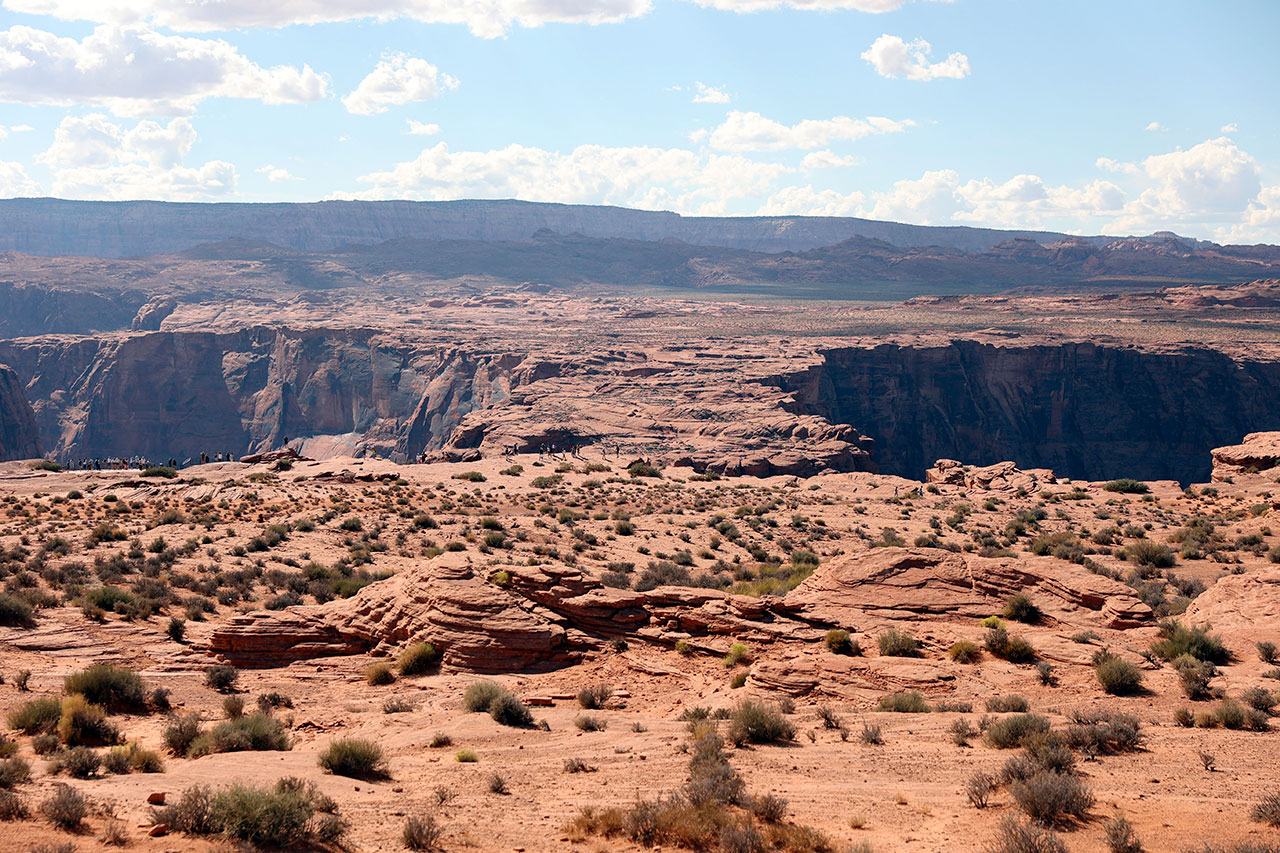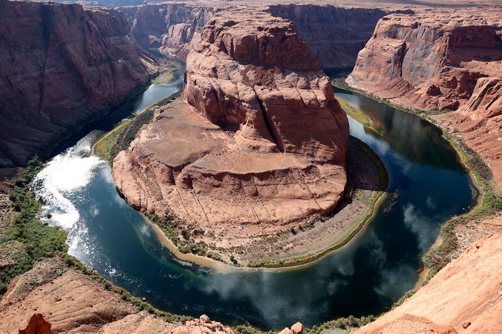 Nous repartons donc vers un des endroits du Grand Canyon qui a gagné en popularité ces dernières années: Horseshoe Bend. Qu’on peut traduire par « la courbe du fer à cheval ». C’est « juste » un endroit où le Colorado à creuser la roche pour en faire un canyon en forme de fer à cheval. Pour y aller, il faut acquitter 10$ à la ville de Page. L’endroit a été aménagé pour que les très nombreux touristes évitent de faire n’importe quoi. Comme par exemple faire une chute de 300 mètres au fond de canyon. Parce que oui c’est si gigantesque que ça. Même en l’ayant vu en photo avant de venir, je ne m’attendais pas à voir quelque chose d’aussi monumental. C’est à tomber à la renverse tellement le paysage est beau.