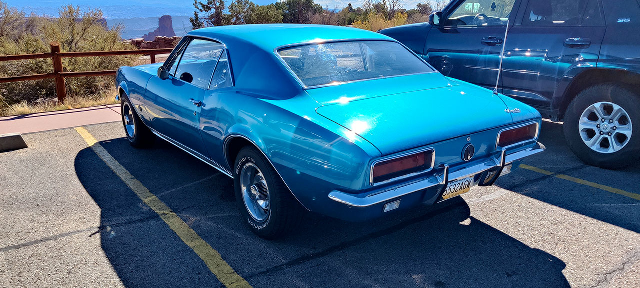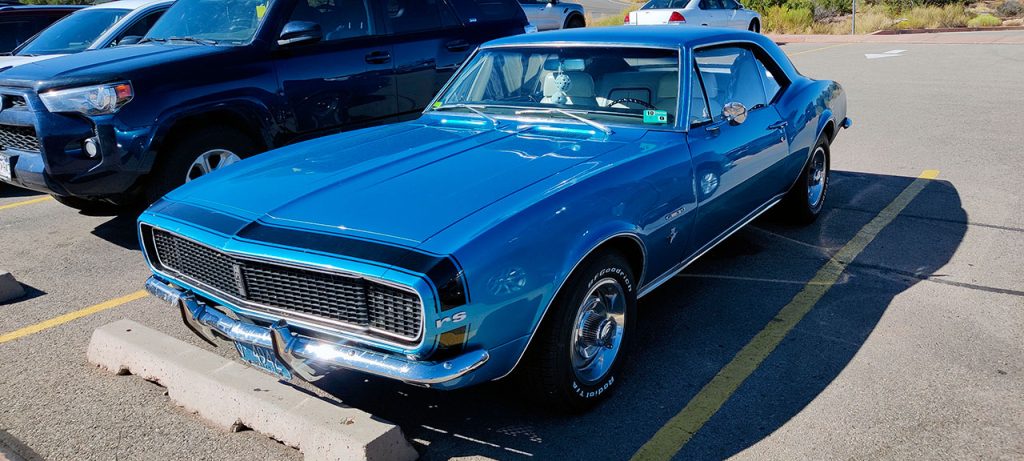 Sur le parking du visitor center se trouve une magnifique voiture bleue. Des français passent dans mon dos. Lui, nous l’appellerons Patrick Bertier, a voulu faire celui qui sait en disant de façon ostensible « Ha je connais ça! Hoho! C’est une Corvette! » En fait c’est une Camaro RS de 1967 mais je m’égare. Les paysages donc.
